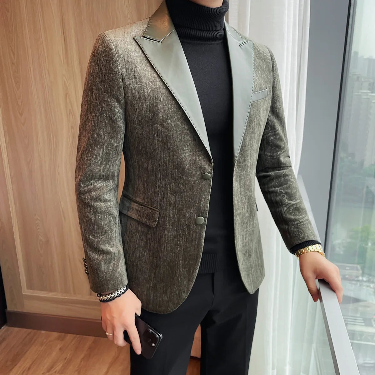 High-quality men's fashionable suit jackets, autumn and winter casual patchwork suits, new high-end patchwork suits