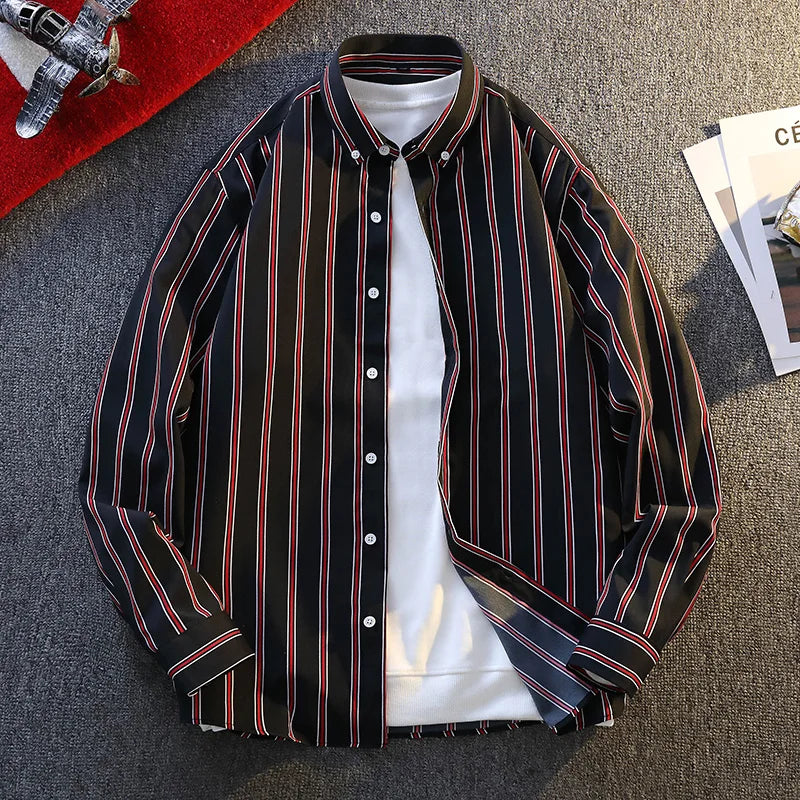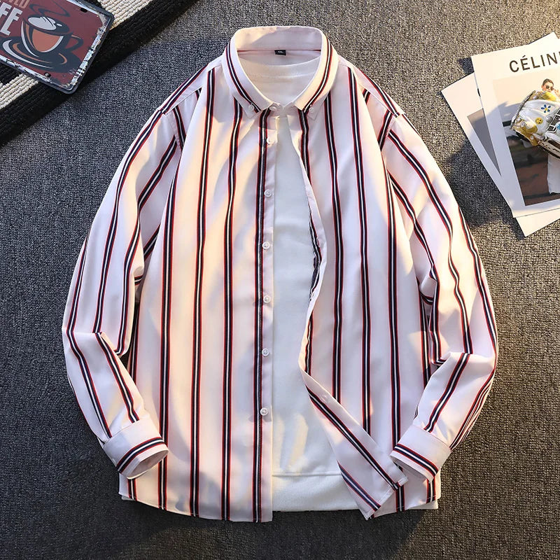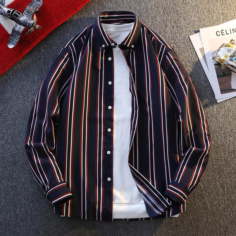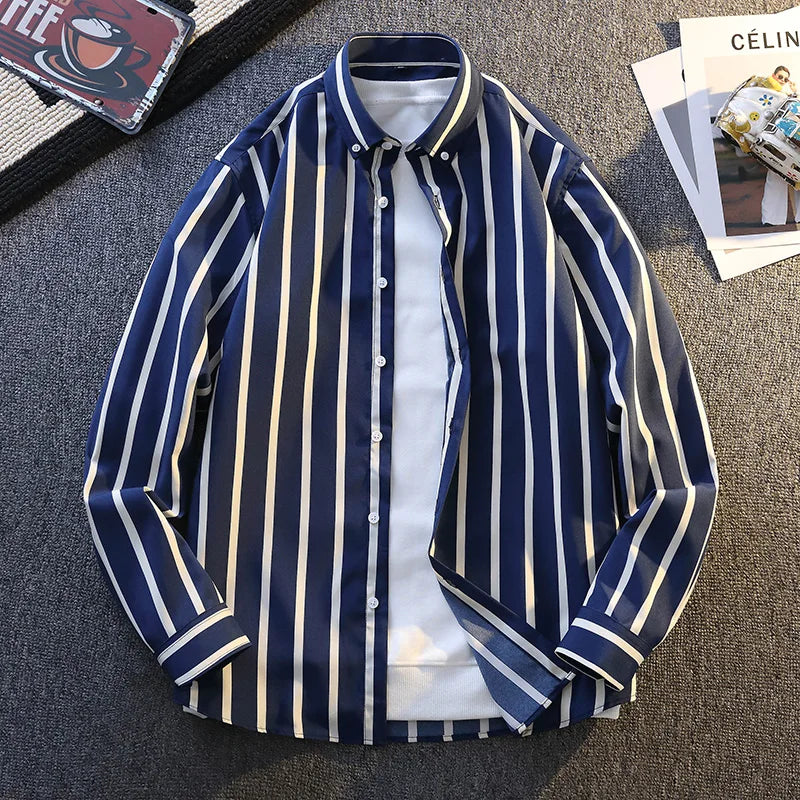 High-quality spring new stylish and cool striped men's long-sleeved shirt for banquets, a versatile business and casual shirt