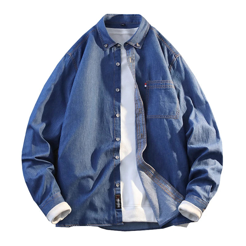 High-quality, stylish, versatile and casual shirts for teenagers in autumn, pure cotton denim long-sleeved shirts