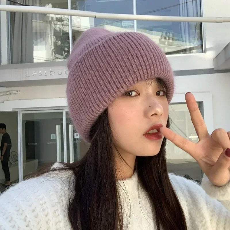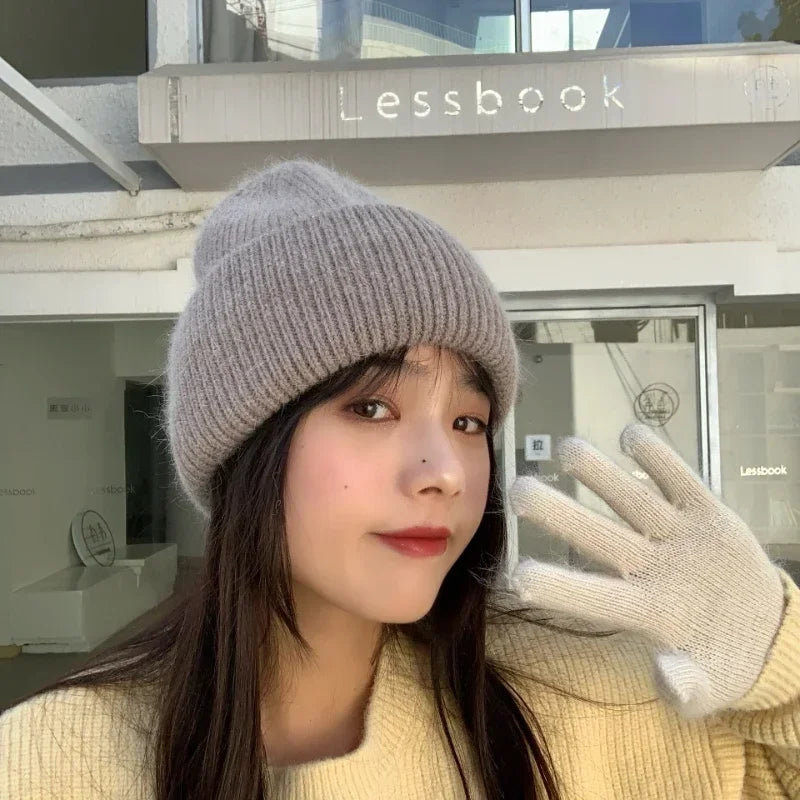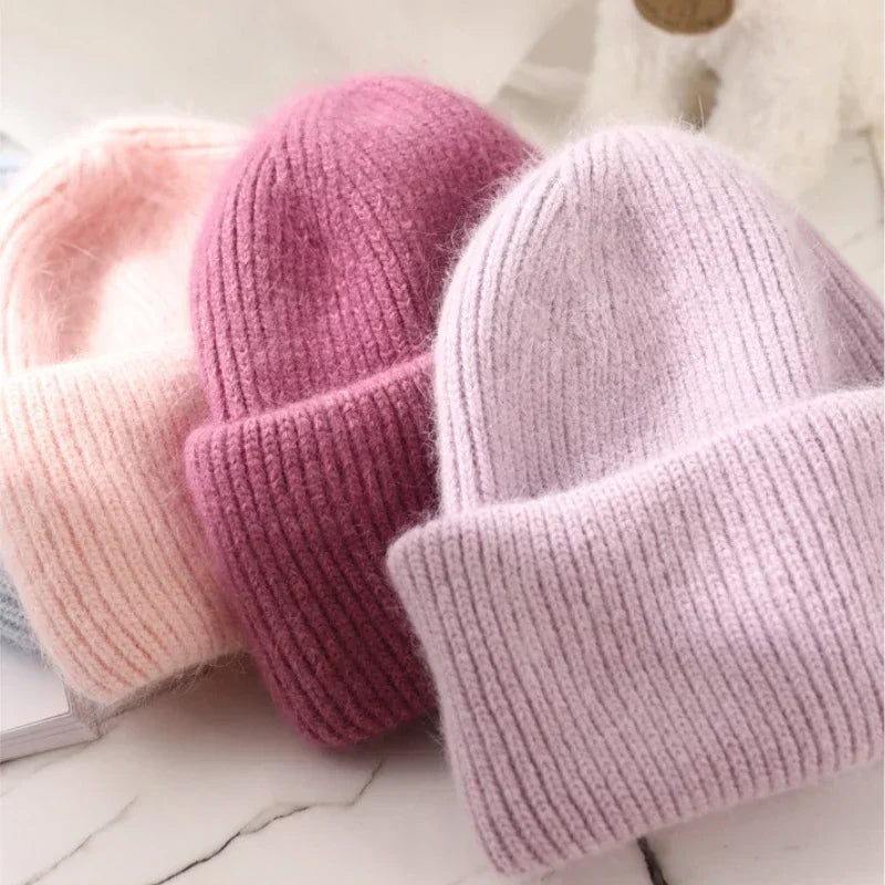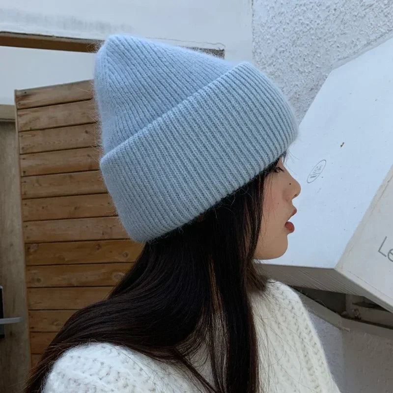 High Quality Thickened Knitted Beanies Hat Women Men Skiing Gorras Winter Rabbit hair Warm Wool Caps Ear Windproof Cycling Hats