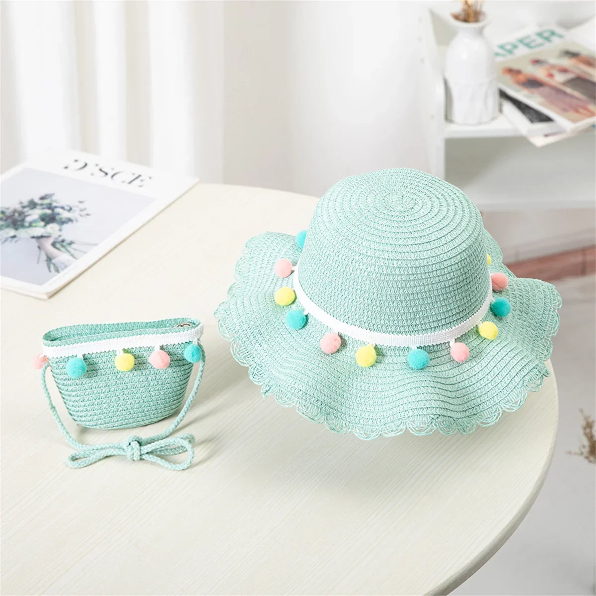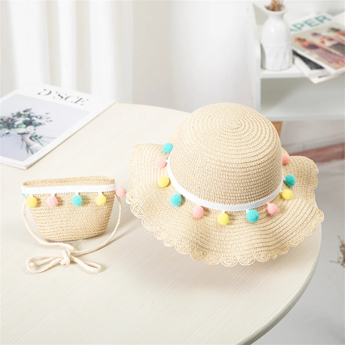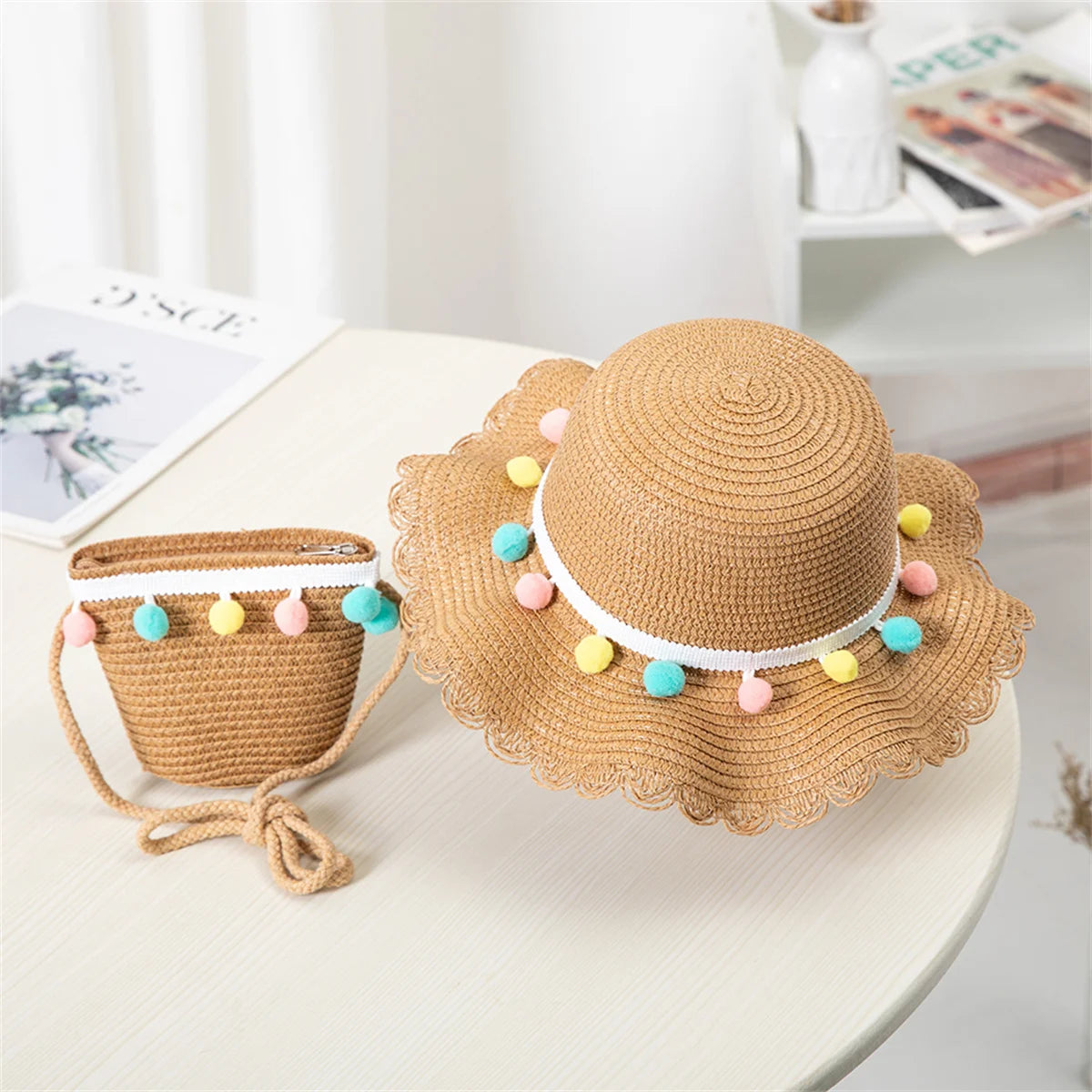 Kids Girls Summer Fashion Children Sunscreen Sun Hat Straw Hat Bag For Girls Cool Hat Girl Cute Breathable BabyAccessories