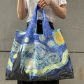Large-capacity portable shopping bag, lightweight and foldable, oil painting style shopping bag, shoulder bag, large tote bag