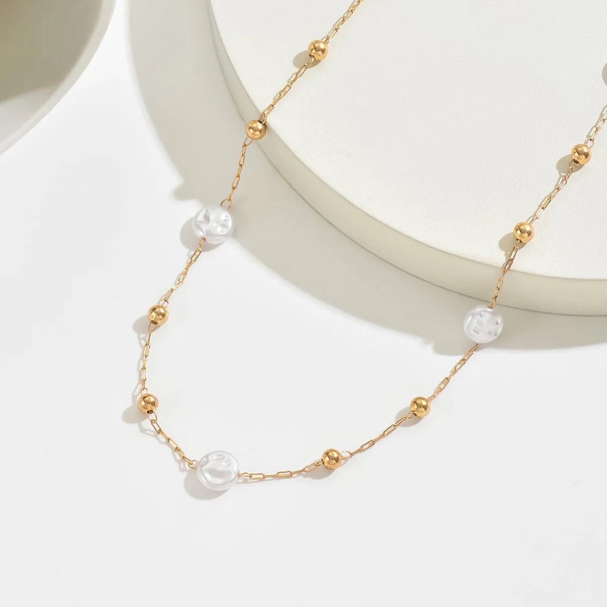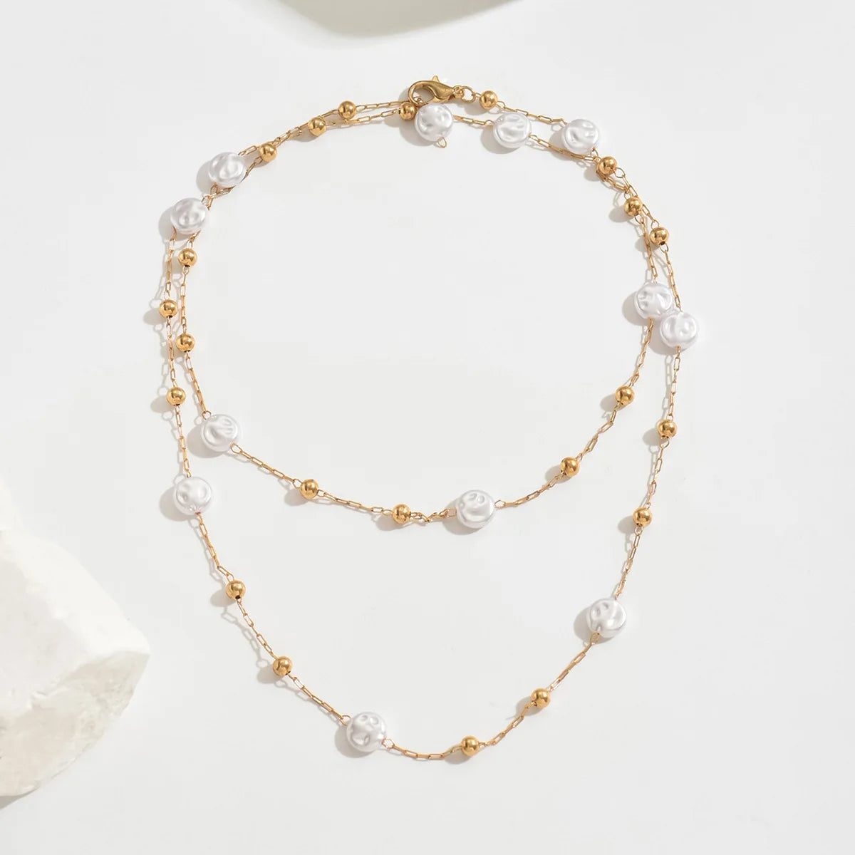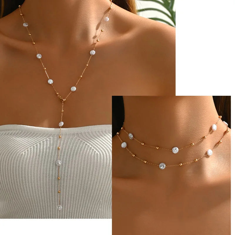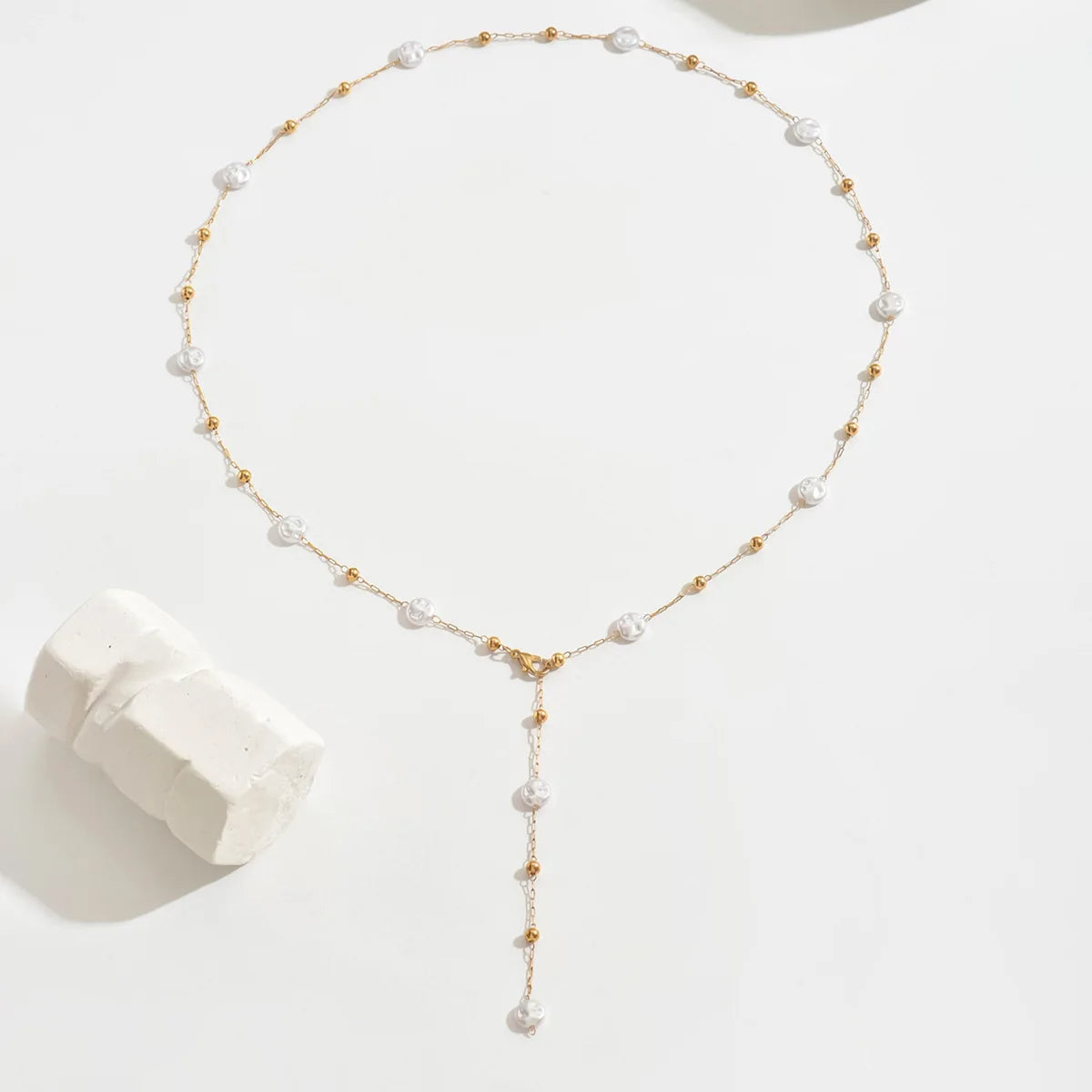 Lariat Pearls Long Chain Necklace For Women, Y-shaped Drop Necklace, Stainless Steel Link Simple Jewelry