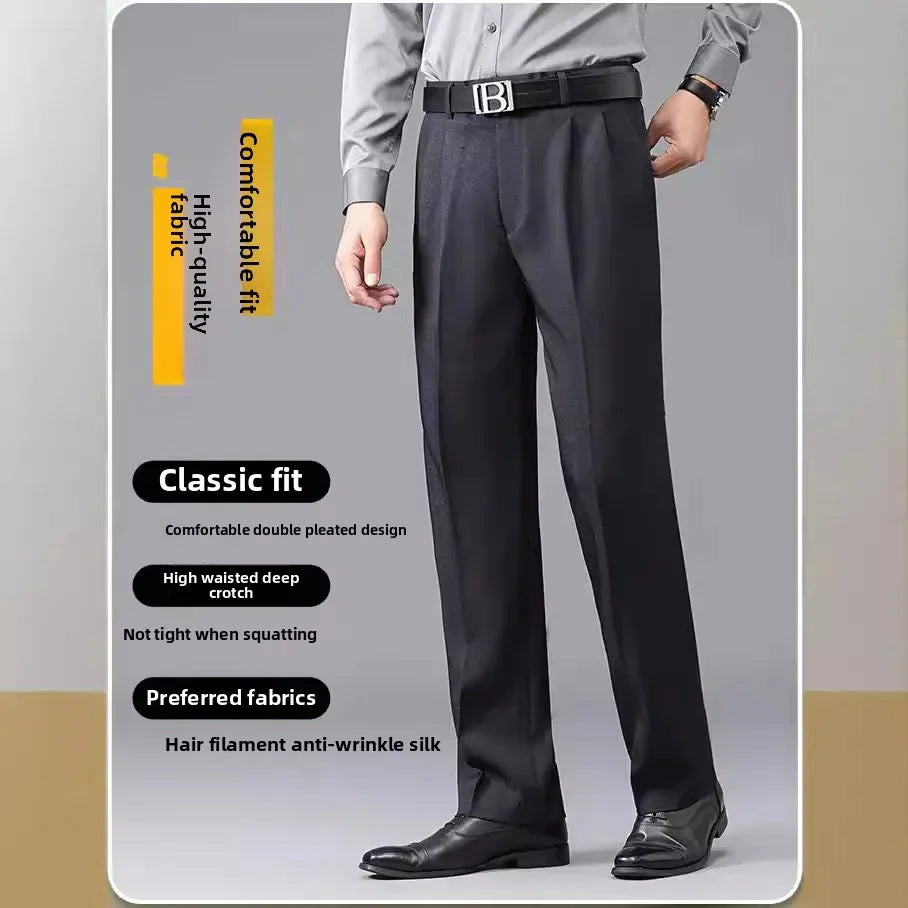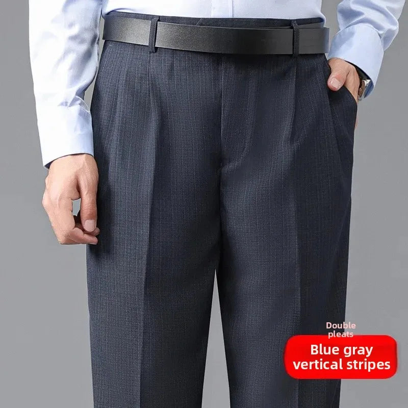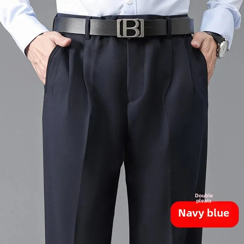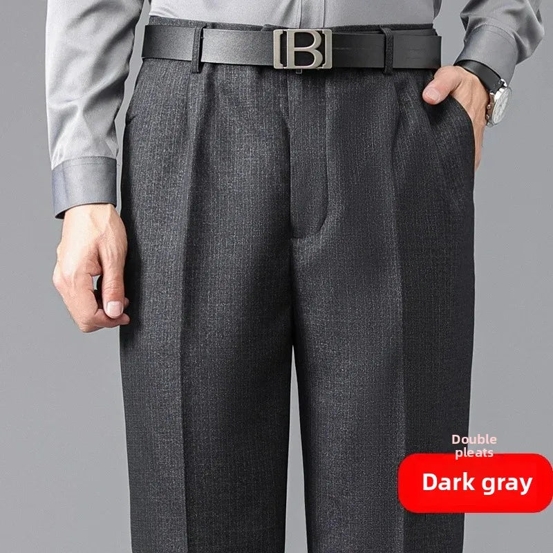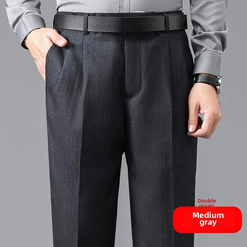 Loose Straight Leg Thick Dad Style Men's Autumn Winter Business Formal Trousers No Ironing Large Size Pants Casual Wear