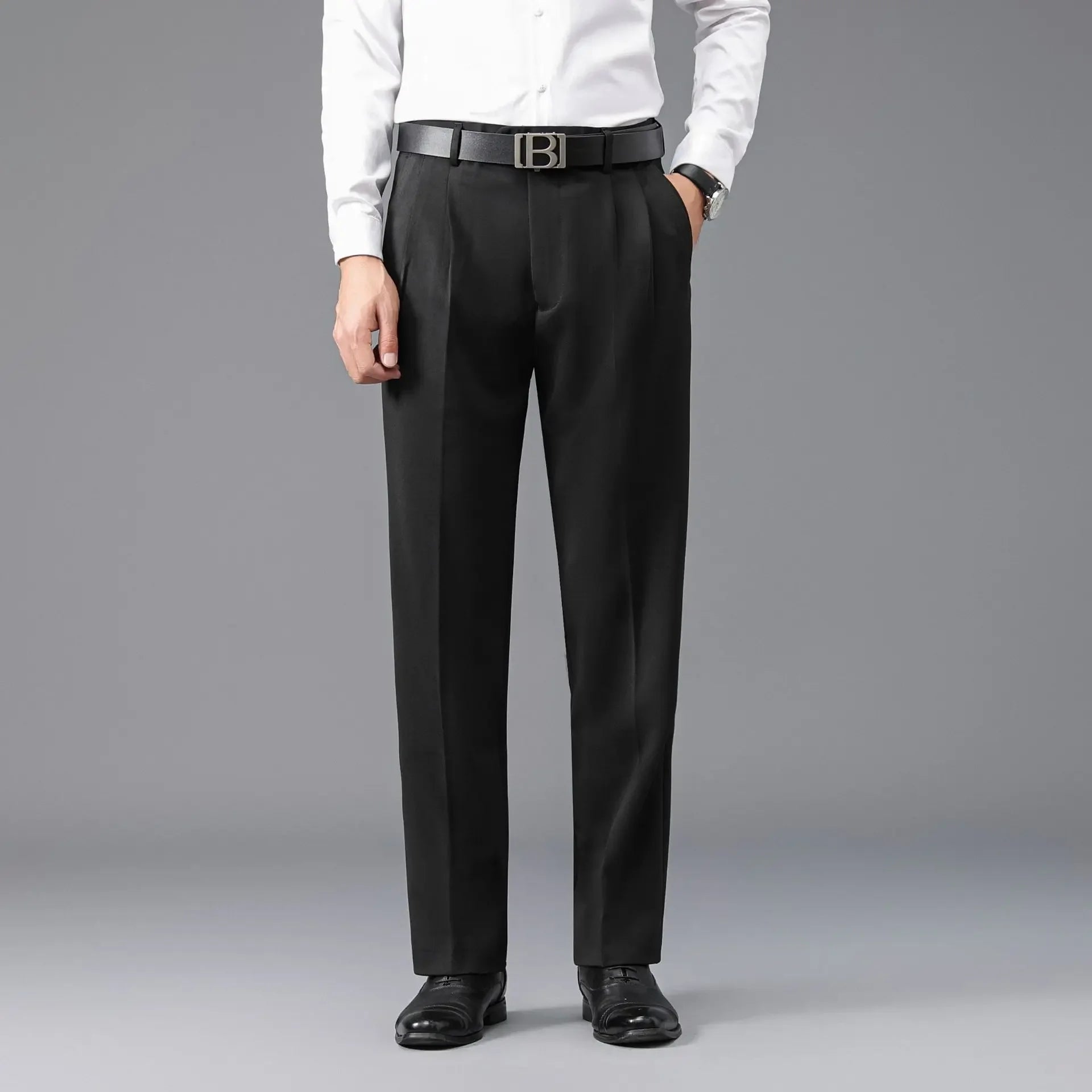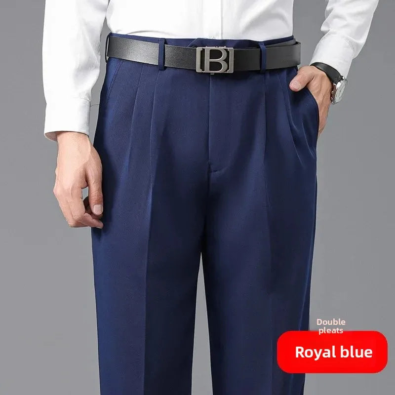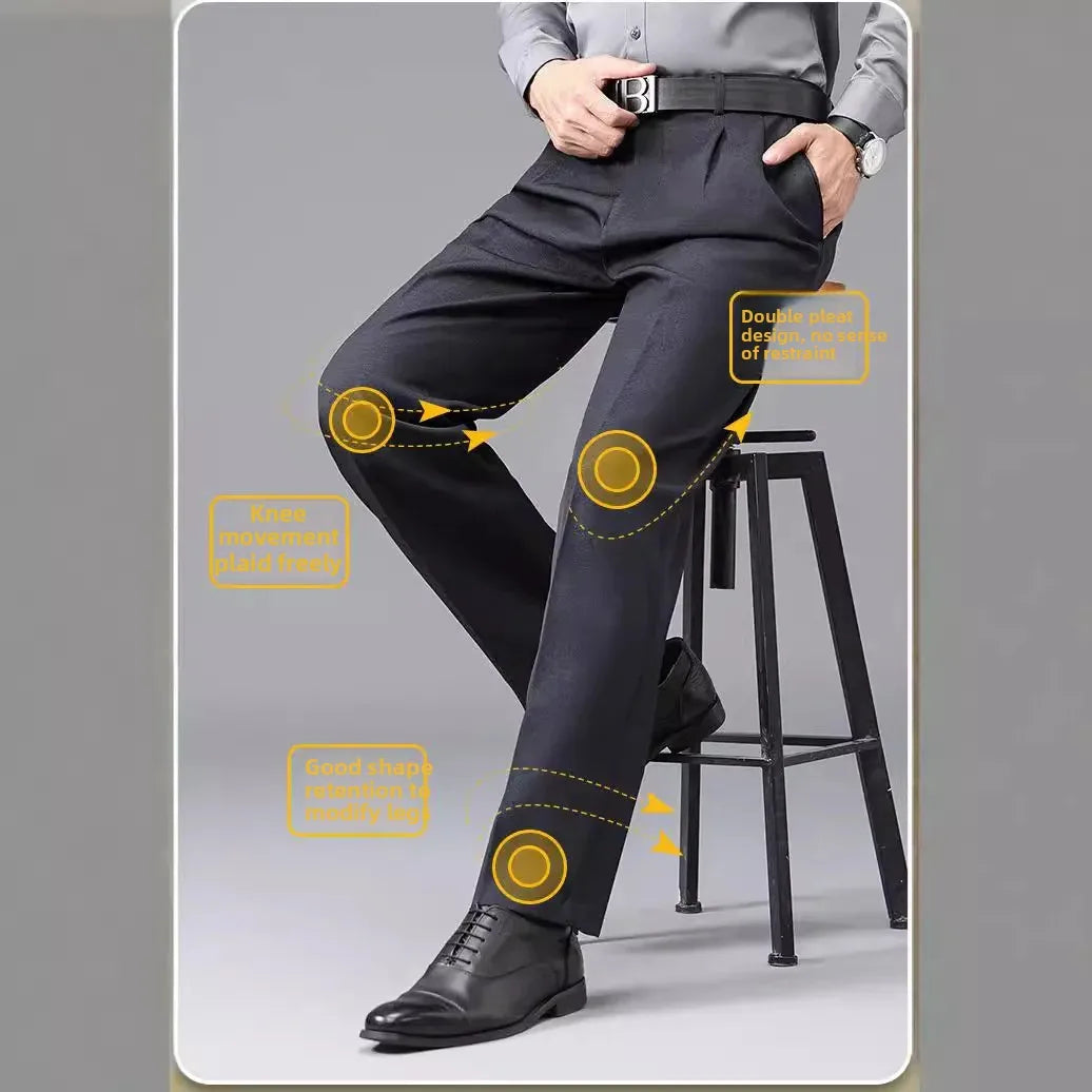 Loose Straight Leg Thick Dad Style Men's Autumn Winter Business Formal Trousers No Ironing Large Size Pants Casual Wear