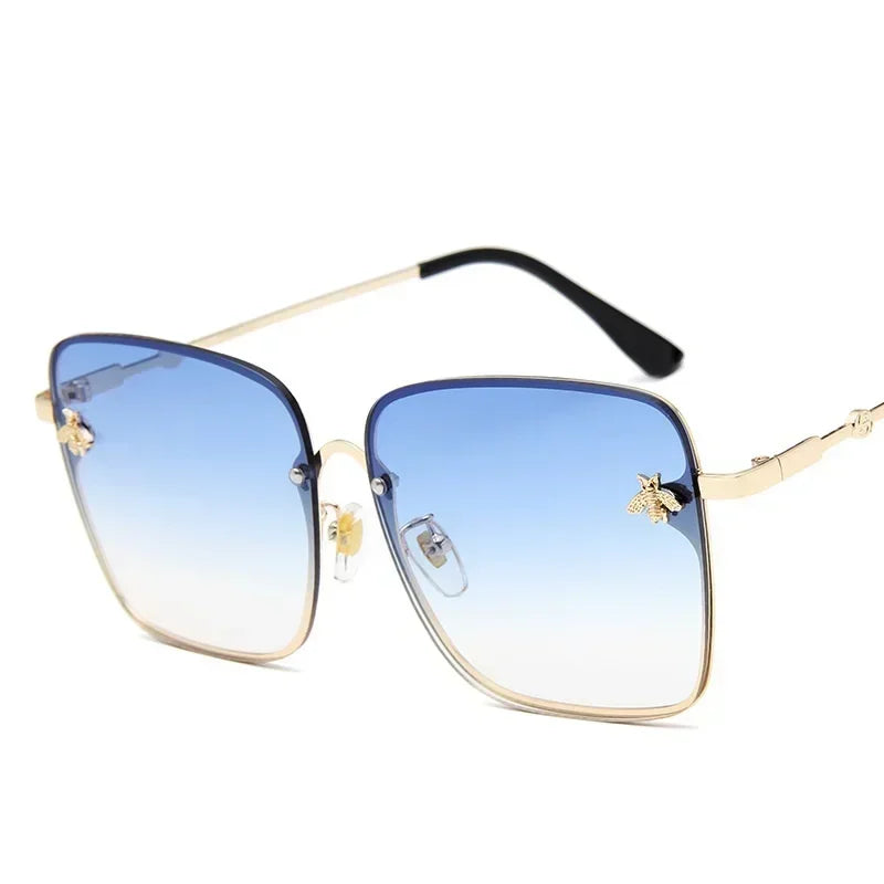 Luxury Brand Designer Sunglasses Woman Vintage Rimless Square Sun Glasses Female Gradient Shades Little Bee Ladies Oculos