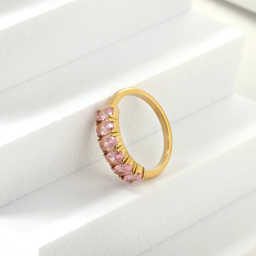 LUXUSTEEL Exquisite Colorful Cubic Zirconia Rings for Women Waterproof Gold Plated Stainless Steel Wedding Luxury Accessories