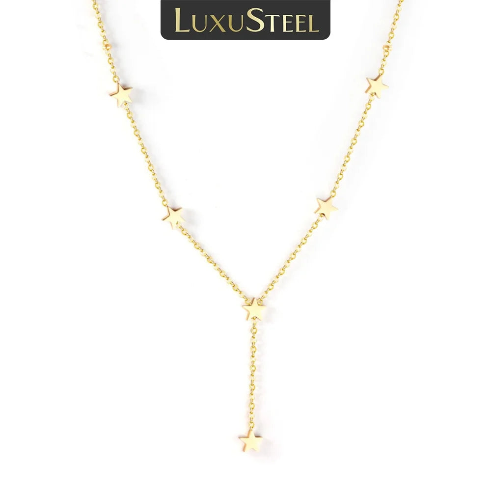 LUXUSTEEL Stainless Steel Star Necklace Women Girl Accessories Gold Color Tassel Jewelry Trendy Style Chains Necklaces