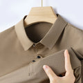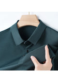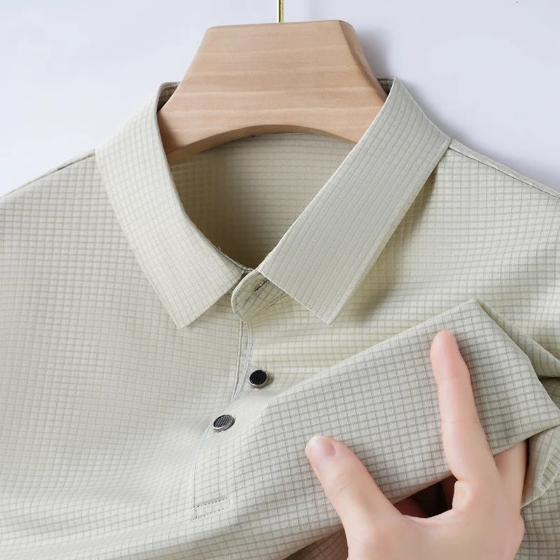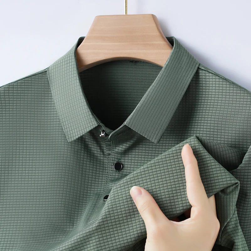 M-4XL Summer Men's POLO Shirt Cool Ice Silk Breathable Thin Short Sleeved T-shirt with Flip Collar Dark Grid Solid Color Top