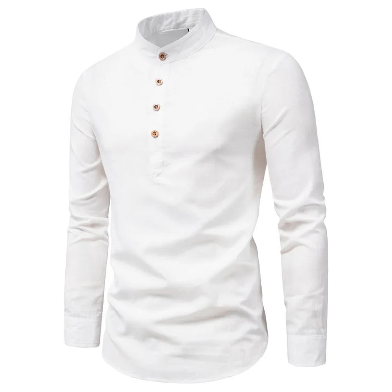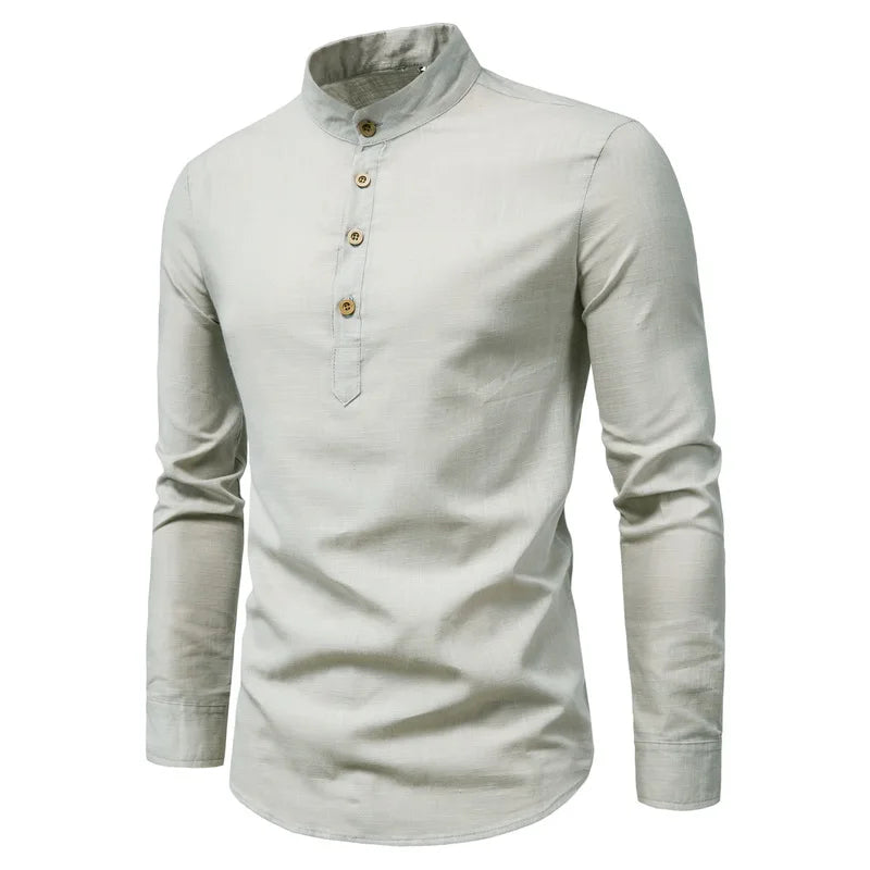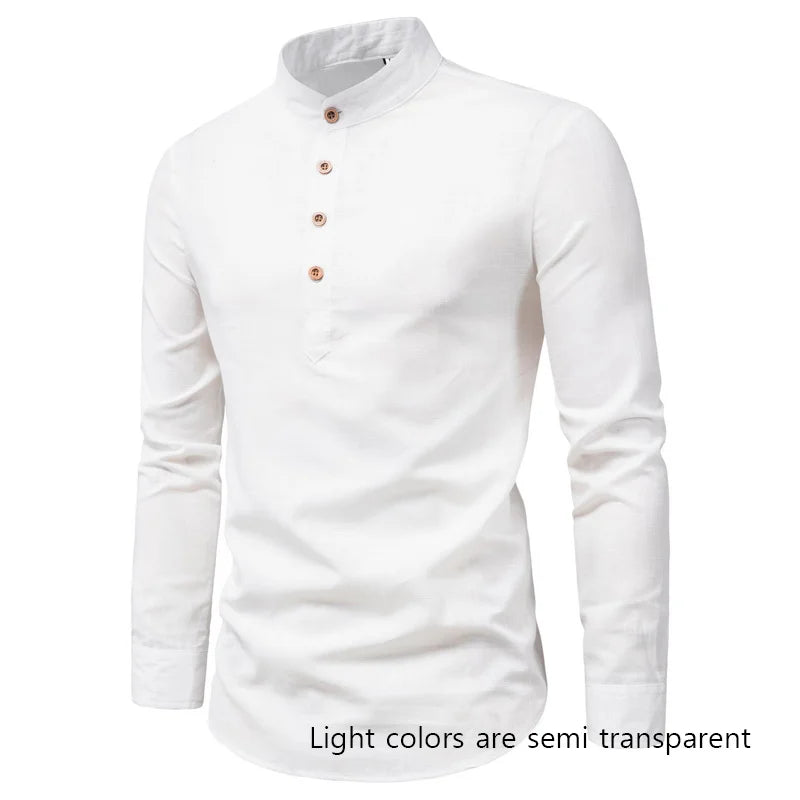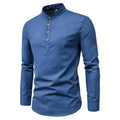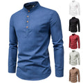 M-5XL Spring and Summer New Men's Long Sleeved Shirt Solid Color Stand Up Collar Single Breasted Thin Top