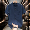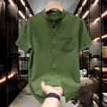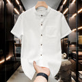 M-5XL Summer Men's Shirt Short Sleeved with Bubble Gauze Textured Fabric Thin Quick Drying Stand Up Collar Short Sleeved Shirt