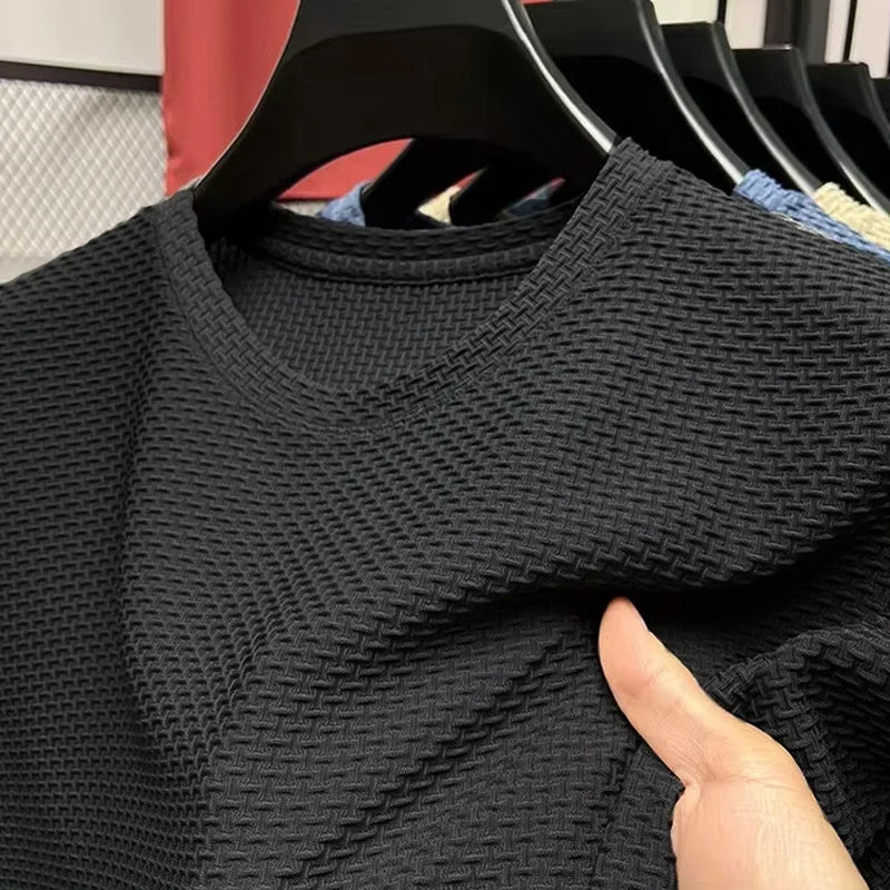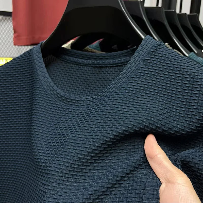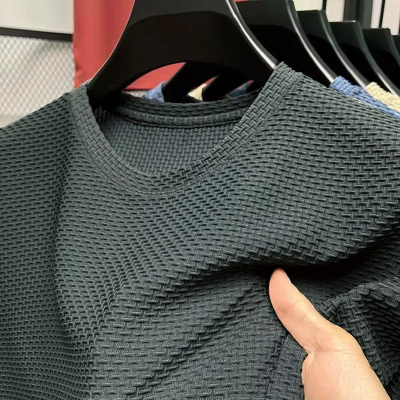 M-5XL Summer New Men's Round Neck Short Sleeved T-shirt Wrinkle Resistant And Breathable Top Texture Fabric Leisure Versatile