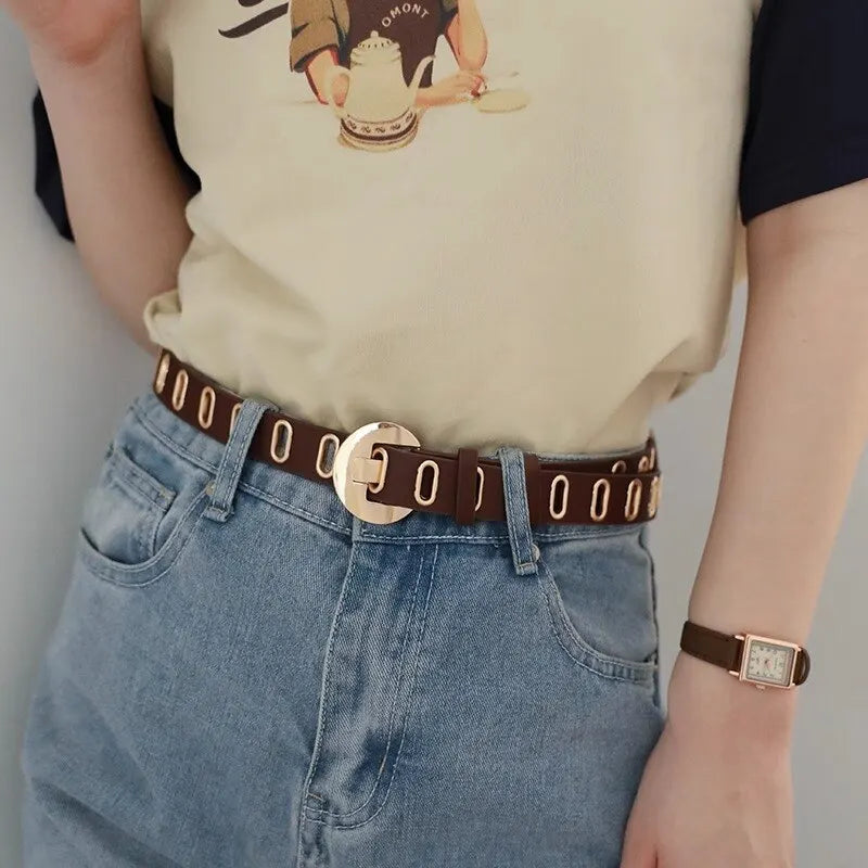 Maikun New Women Belt Adjustable Hole Grunge Punk Belts for Women Alloy Pin Buckle Leather Belt for Pants Dresses Trendy Belt