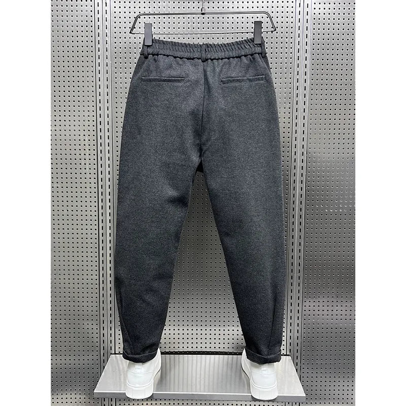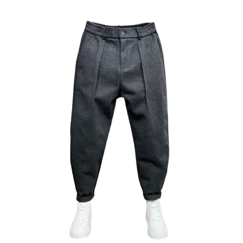 Men's Autumn Winter Wide Leg Pants Woolen Trousers Loose Harlan Style Polyester Fiber Straight Tube Business Casual Trousers