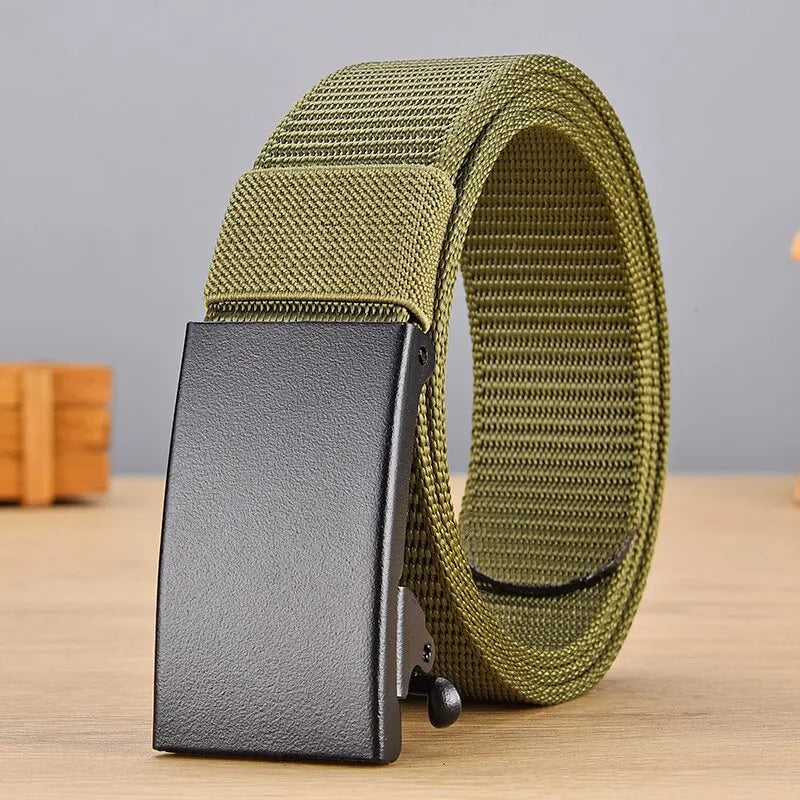Men's Belt Automatic Metal Buckle Imitation Nylon Webbing Outdoor Work Belt Toothless Automatic Buckle Casual Sports Canvas Belt