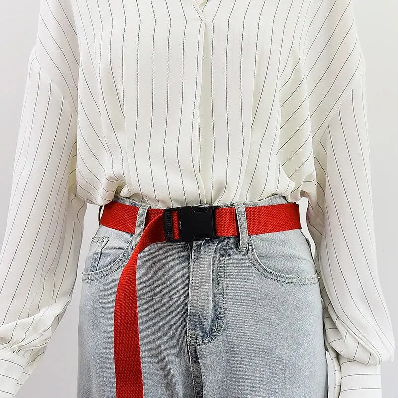Men's Belt Outdoor Leisure Canvas Belt Without Metal Plastic Buckle Belt Women Sports Belt Paired With Pants Jeans Neutral Belts