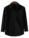 Men's casual long-sleeved corduroy solid color lapel shirt