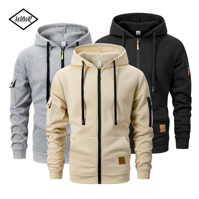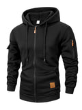Men's Casual Zipper Hoodie With Kangaroo Pocket Solid Color Long Sleeve Autumn Winter Sports Casual Running Jackets S-XXL