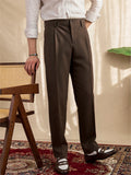 Men's Elegant Tailored Pants High Waist Pleated Button Detail Italian Neapolitan Style Light Business Autumn Winter New Arrival