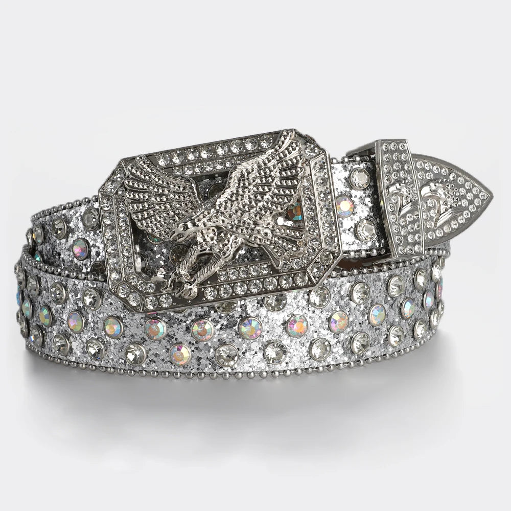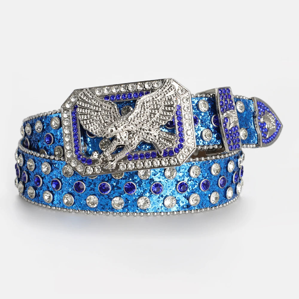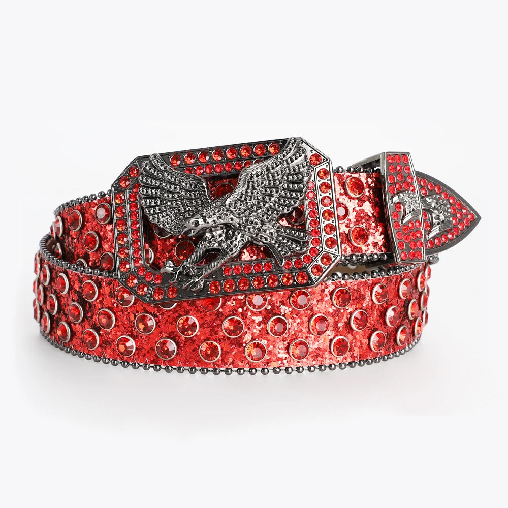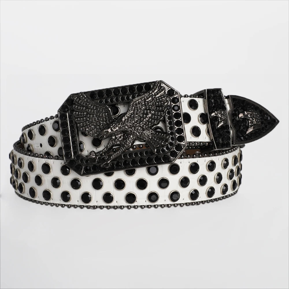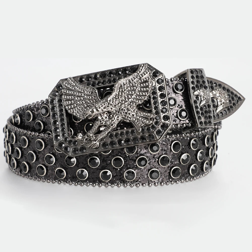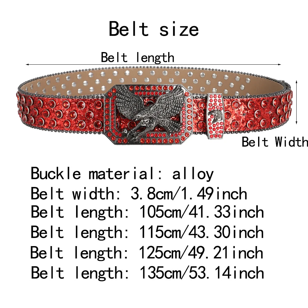 Men's Fashion Eagle Head Buckle Rhinestone Belt Shiny Rivet Designer Belt Punk Hip Hop Rock Style Jeans Belts Women's Y2K Belt