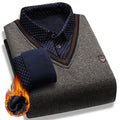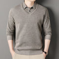 Men's Fleece Lining Sweater Autumn Winter Pullover Polo Shirt Collar Fake Two Piece Thick Warm Top Clothes Casual Knitwear