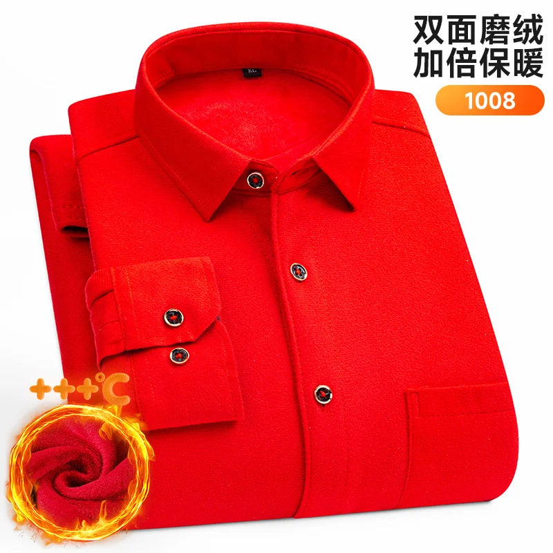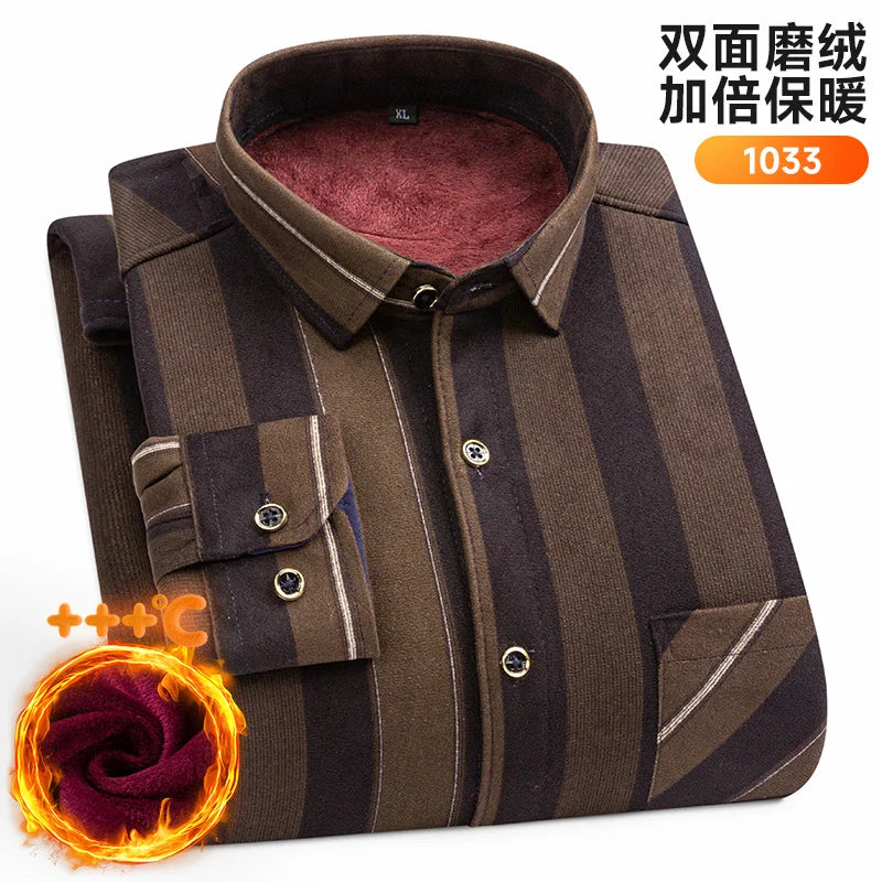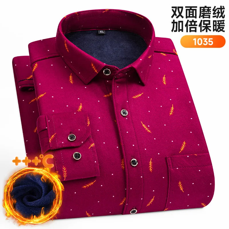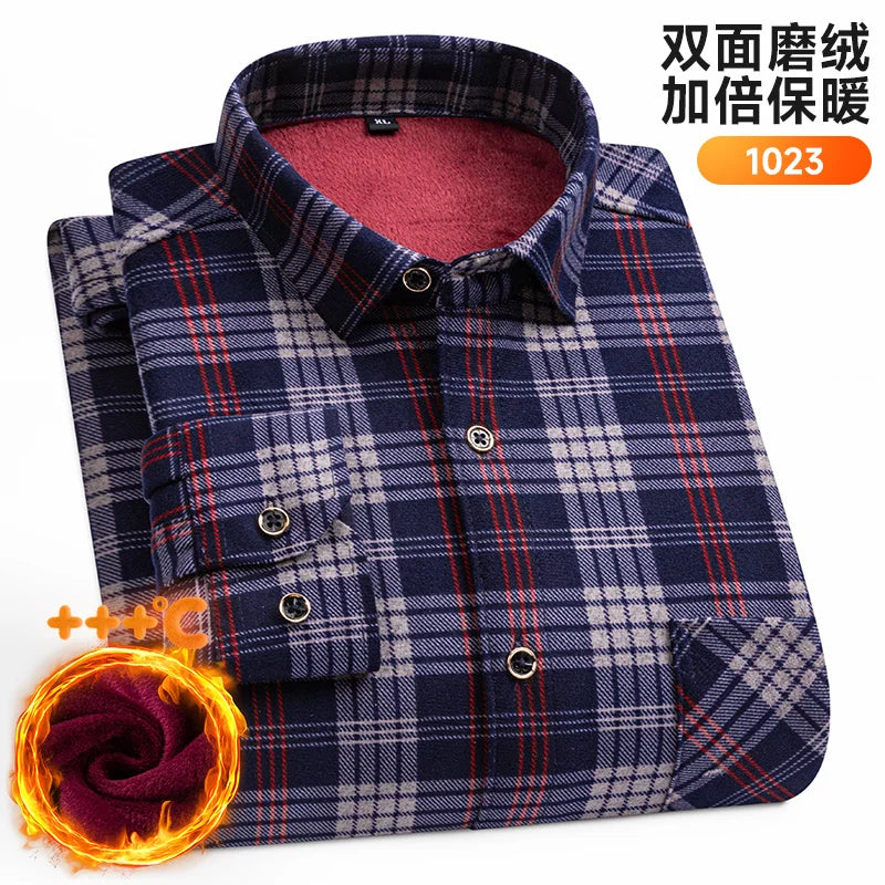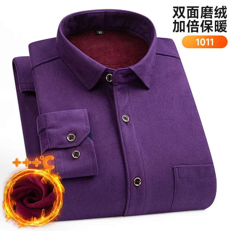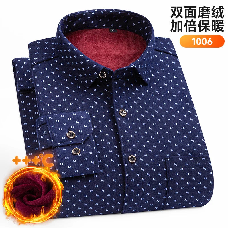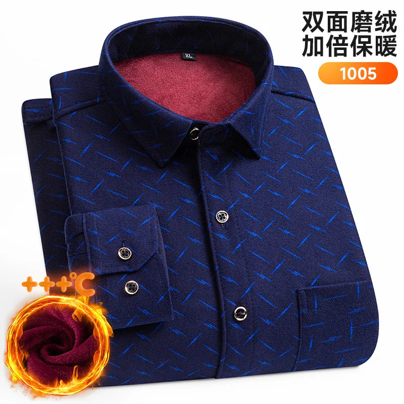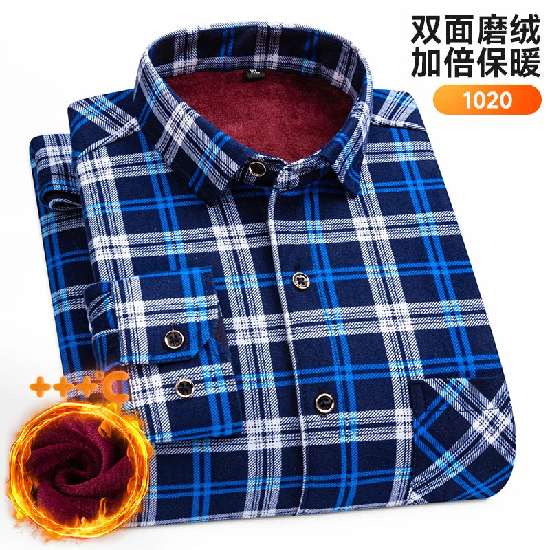 Men's long-sleeved shirt thickened warm 7XL8XL plus size Autumn/Winter casual no-ironing comfortable double-sided fleece top