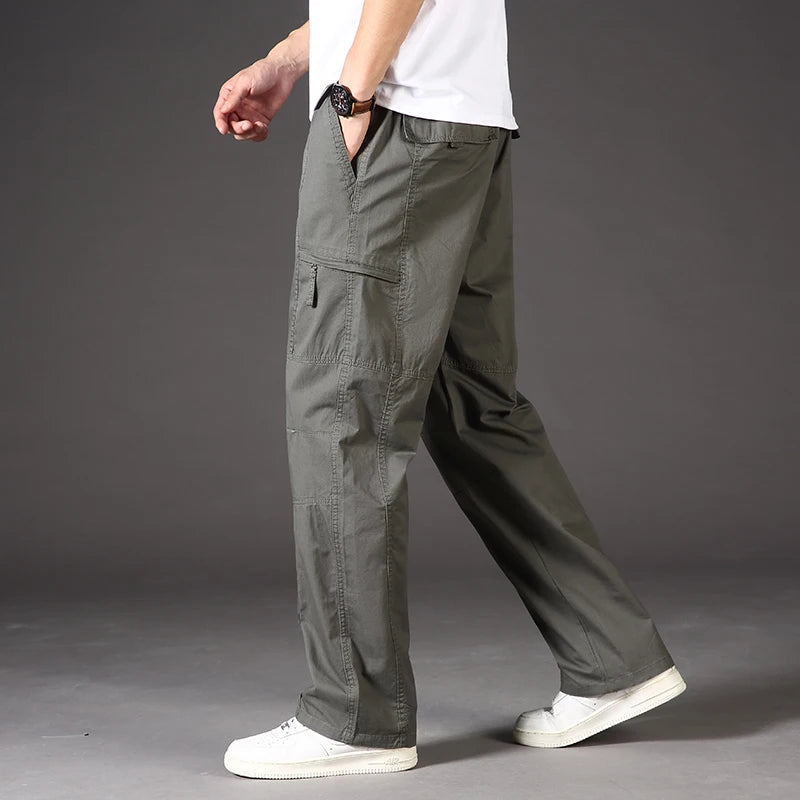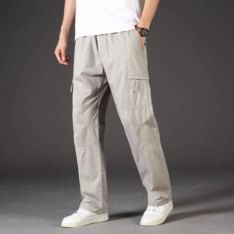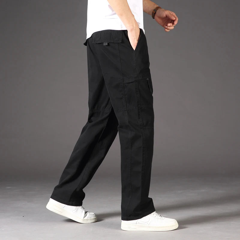 Men's Overalls Cotton Cargo Pants Casual Sports Sweatpants Stretch Waist Work Utility Dungarees Black Gym Jogger Trousers