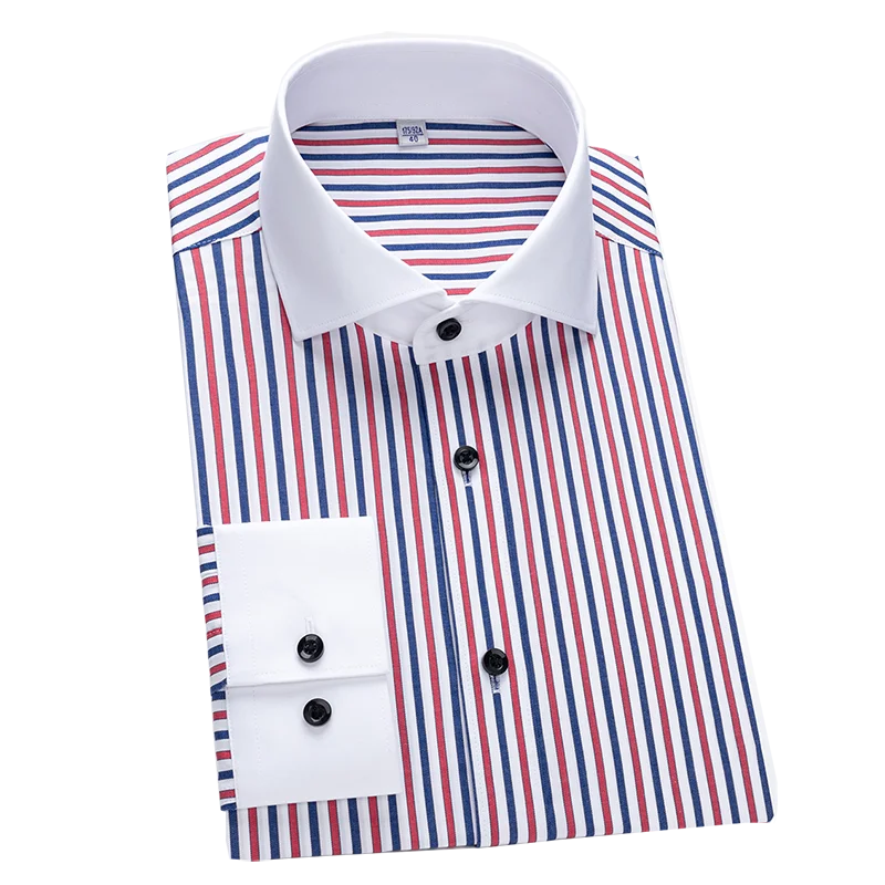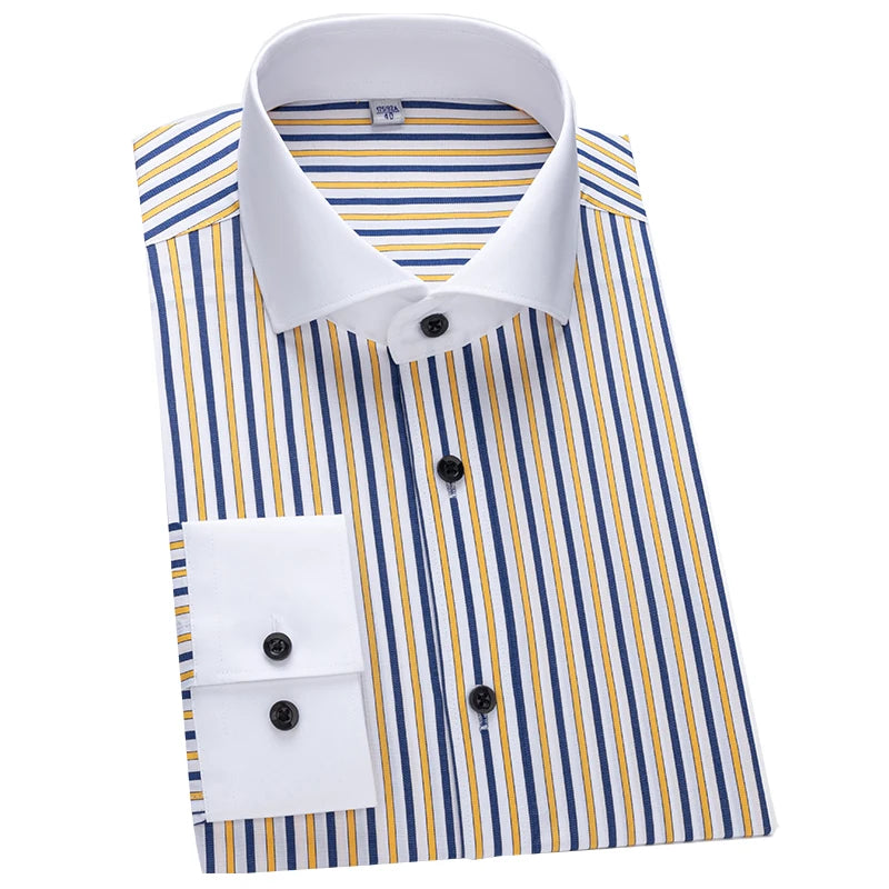 Men's shirt long sleeved slim fit striped Windsor collar contrasting color collar business casual one line collar shirt
