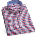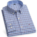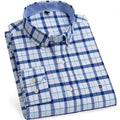 Men's Versatile Casual Checkered Oxford Cotton Shirts Single Pocket Long Sleeve Standard-fit Button Down Gingham Striped 7XL 6XL