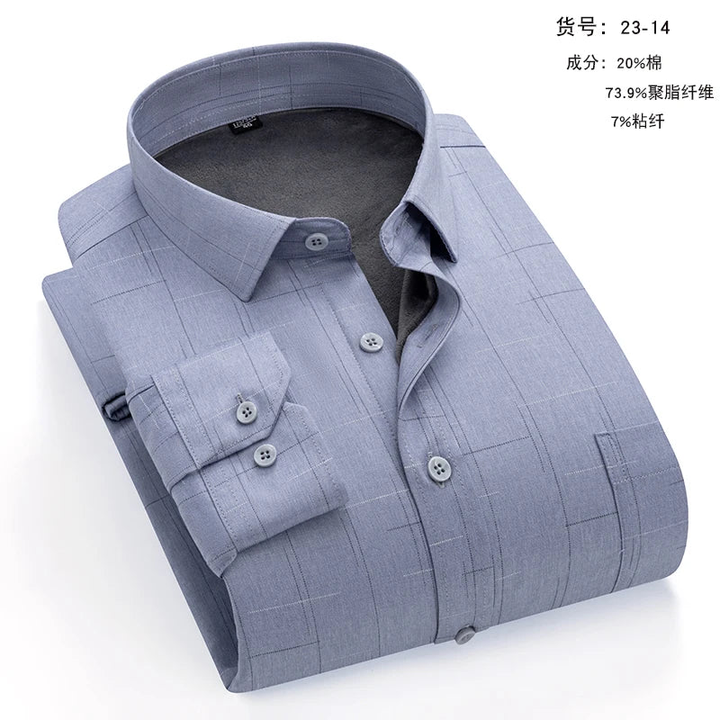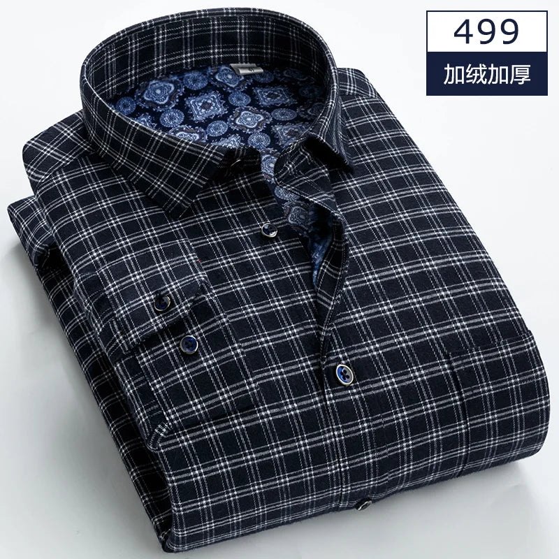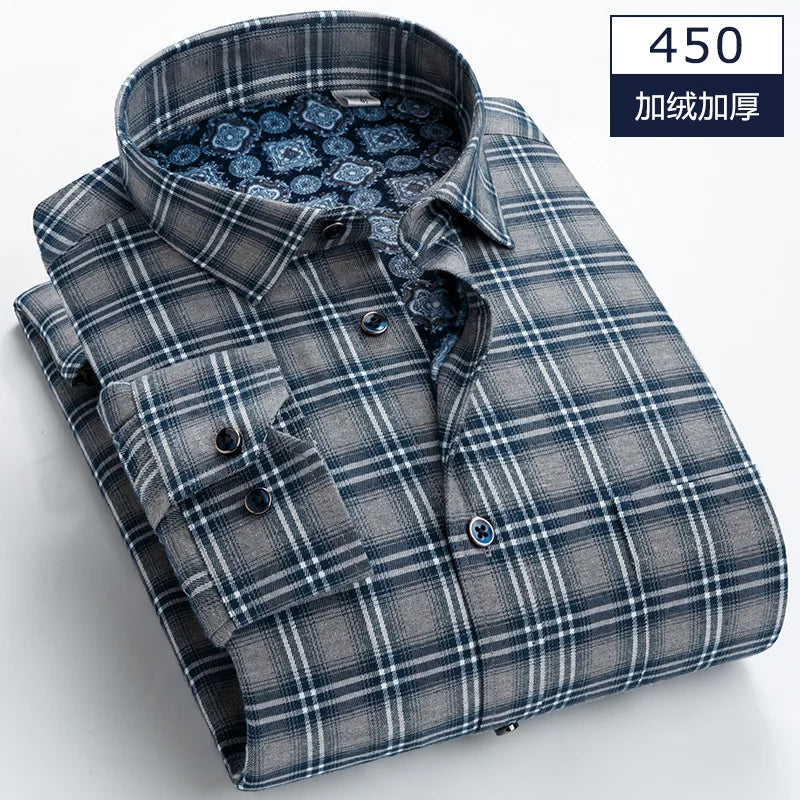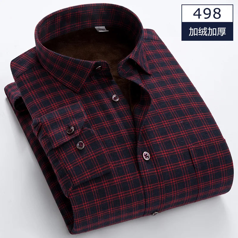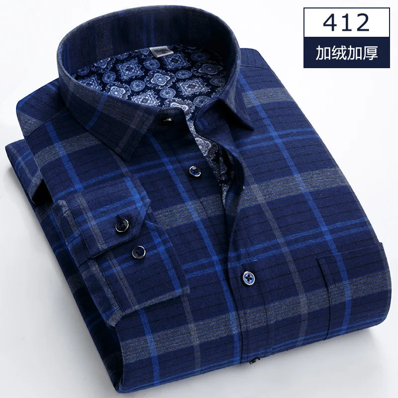 Men's Winter Flannel Shirt, Loose Fit Thickened Fleece-Lined Plaid Shirt for Middle-Aged Dads, Warm and Sturdy Winter Clothing