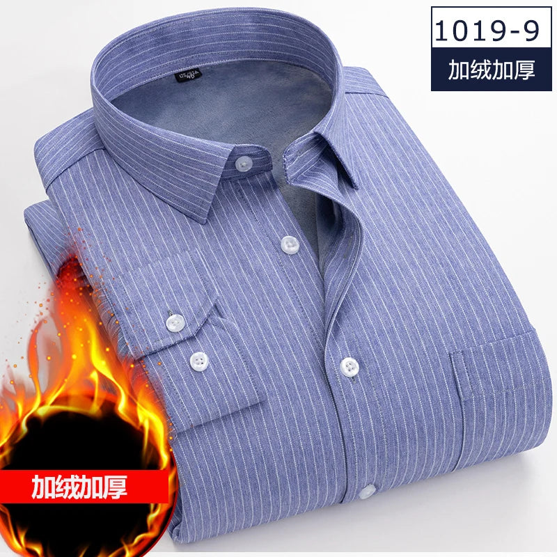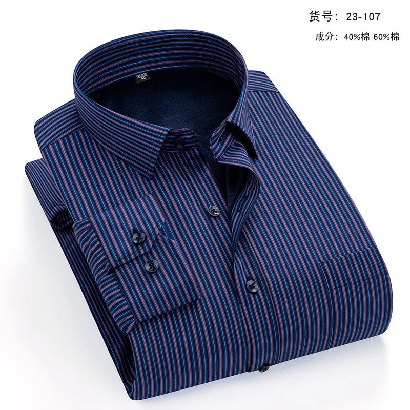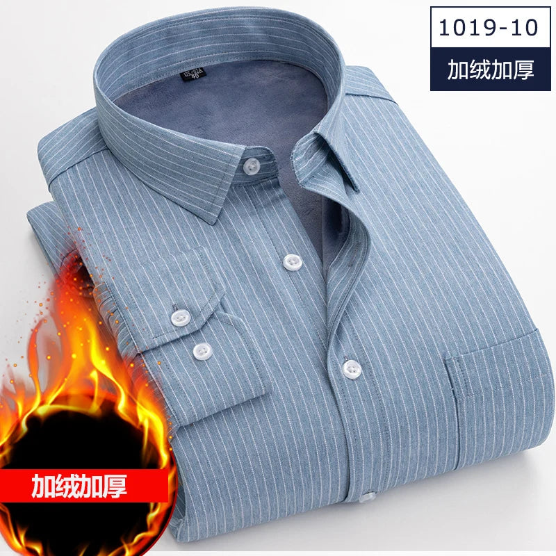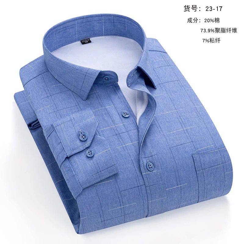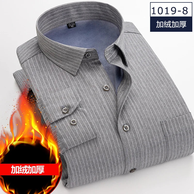 Men's Winter Flannel Shirt, Loose Fit Thickened Fleece-Lined Plaid Shirt for Middle-Aged Dads, Warm and Sturdy Winter Clothing