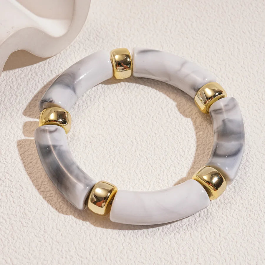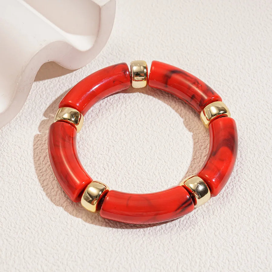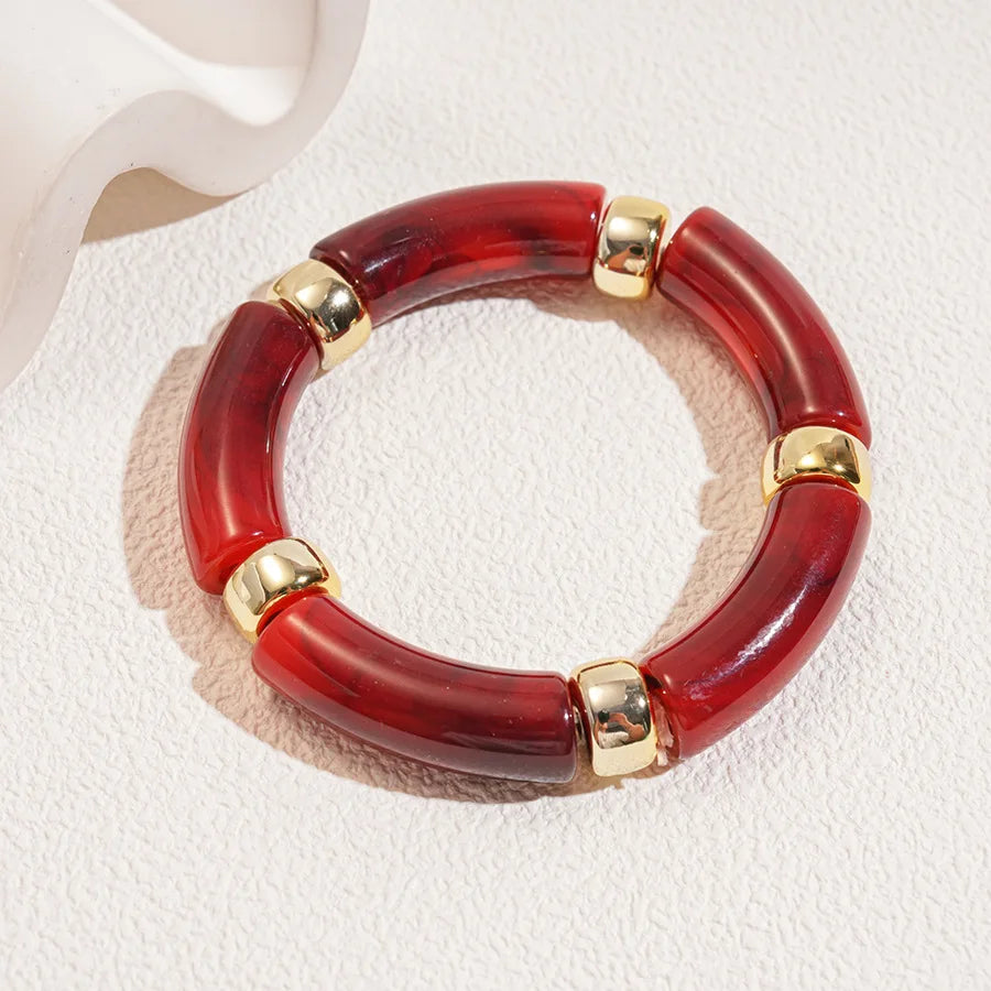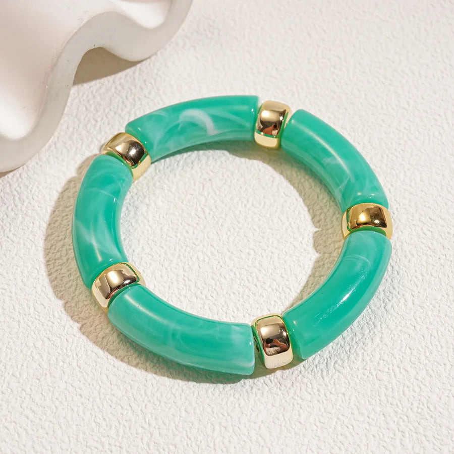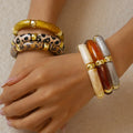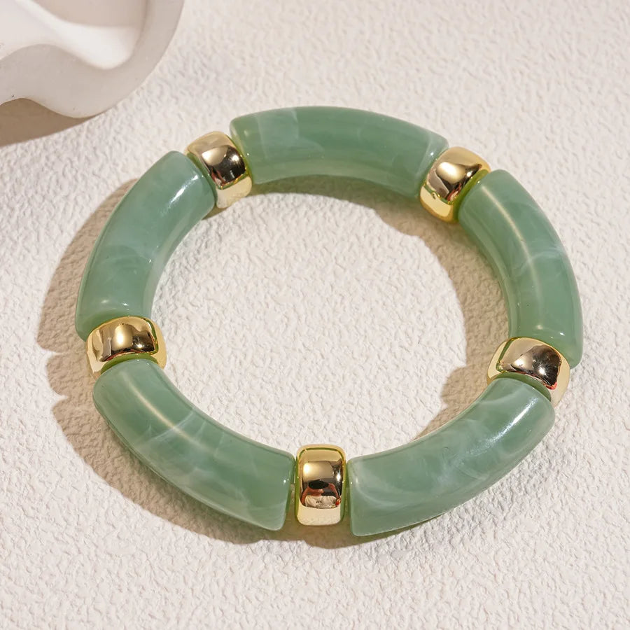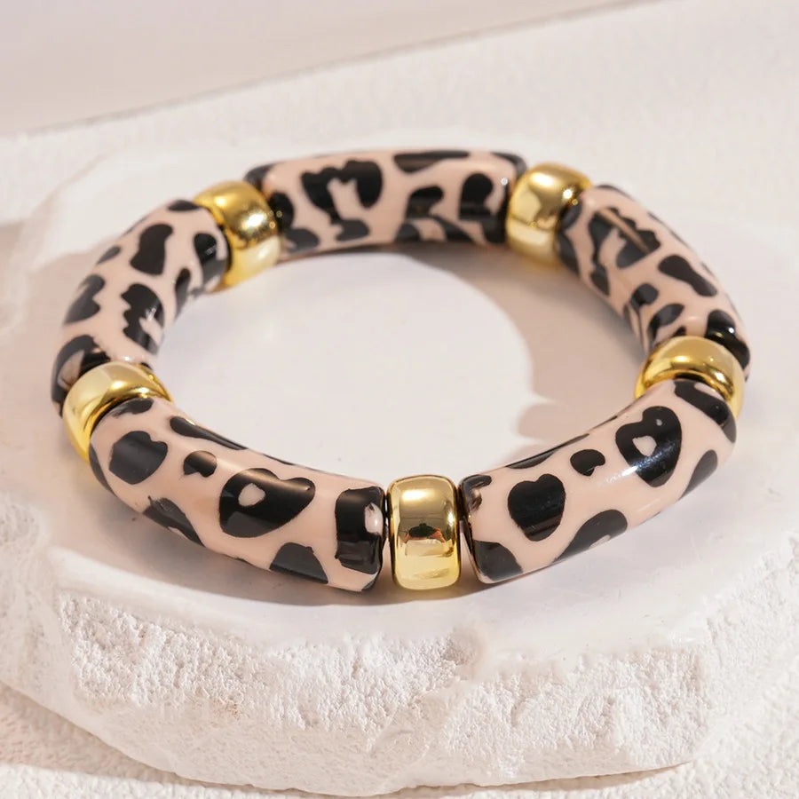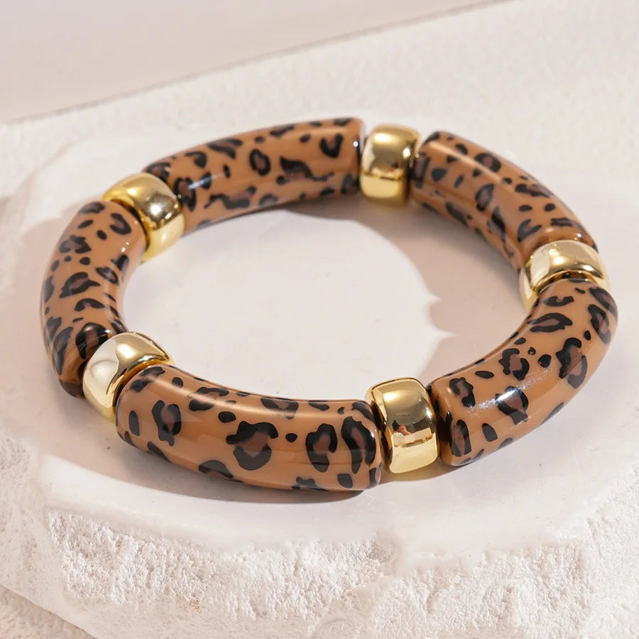 Multi-style Leopard Print Bamboo Tube Acrylic Stretchy Bracelets for Women Men Retro Resin Beaded Bangles Stack Jewelry Gift K1