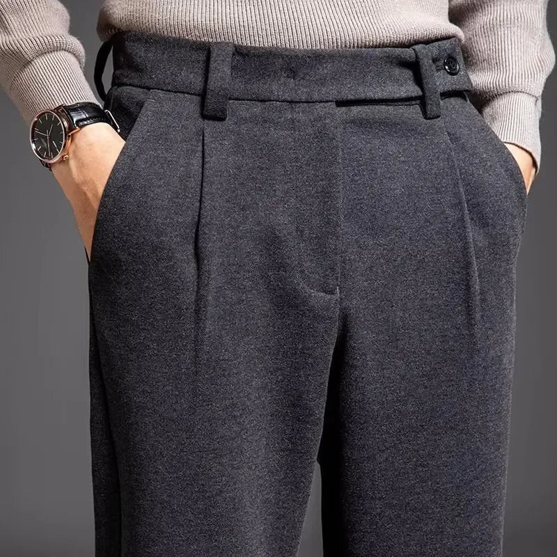 Naples Autumn Winter Men's Casual Pants Straight Woolen Men's Business Versatile Small Western Pants Drape Warmth Trousers