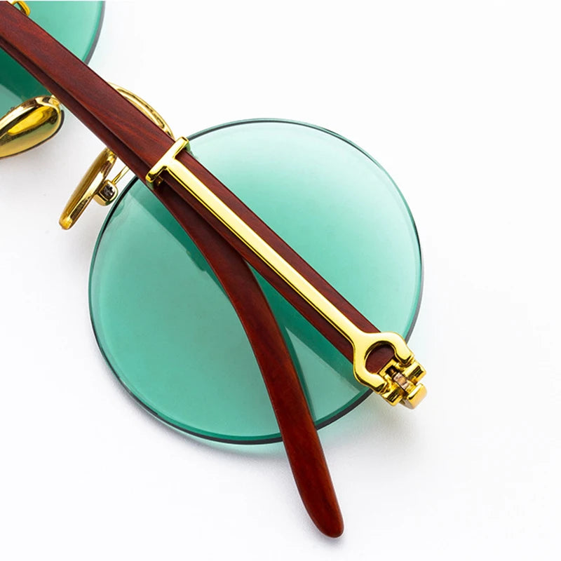 Natural Crystal Green Sunglasses Mineral Lens Woman Round Rimless Glass Sunglasses Man Luxury Vintage Wooden Frame Anti Scratch