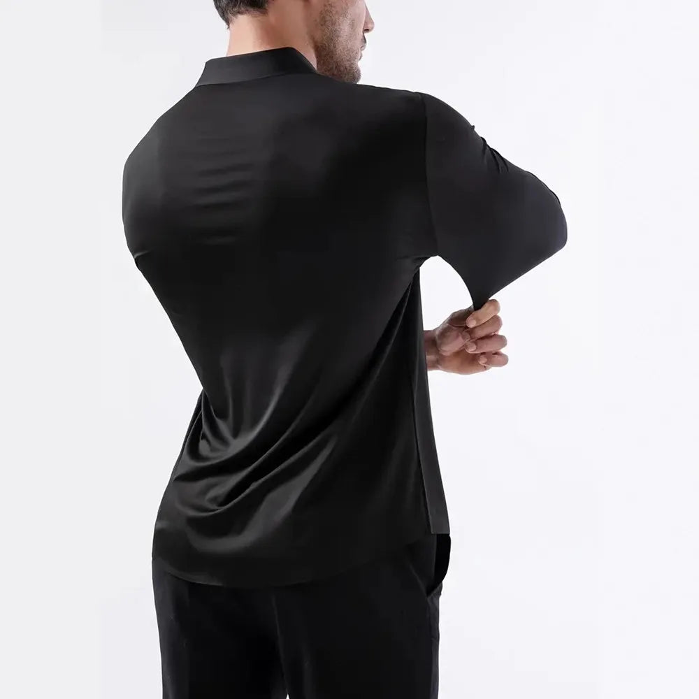 New Design Men's Solid Shirt Long Sleeve Autumn High Elasticity Casual Wrinkle Free No ironing Business Formal White Blue Social