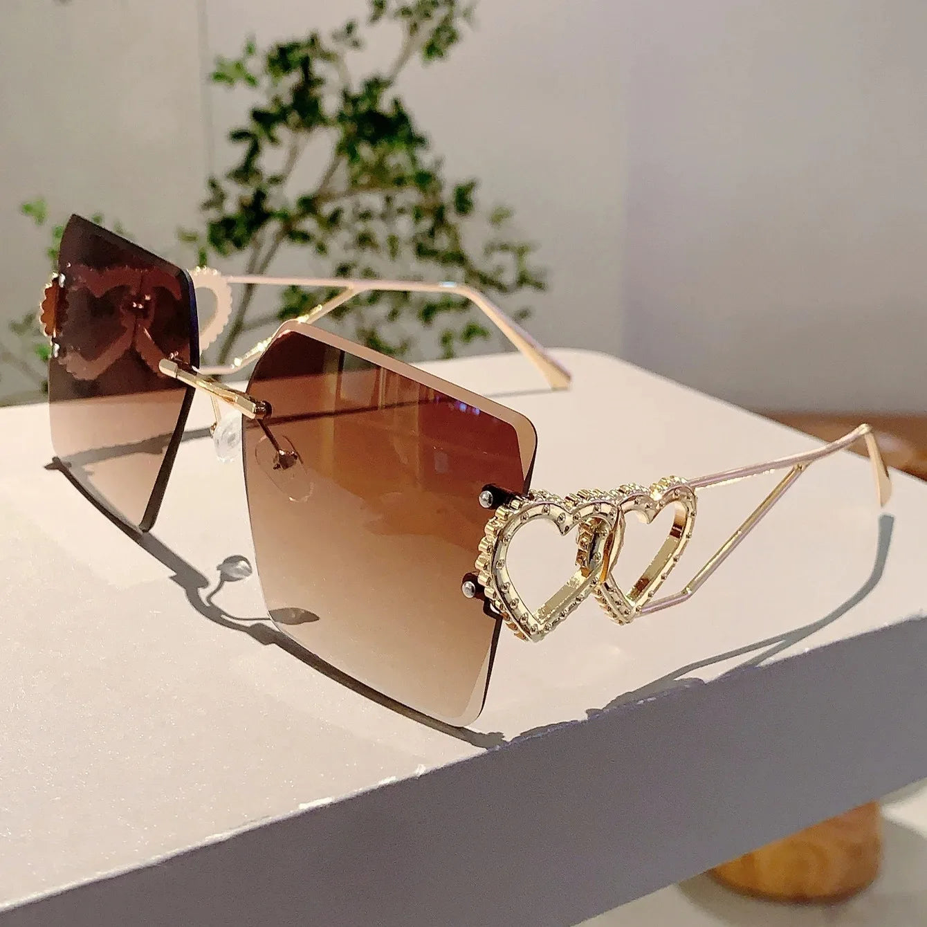 New in Heart Chain Designer Lady Shades Retro Brand Trends Sun Glasses Luxury Metal Decoration Sunglasses for Women's Eyeglasses