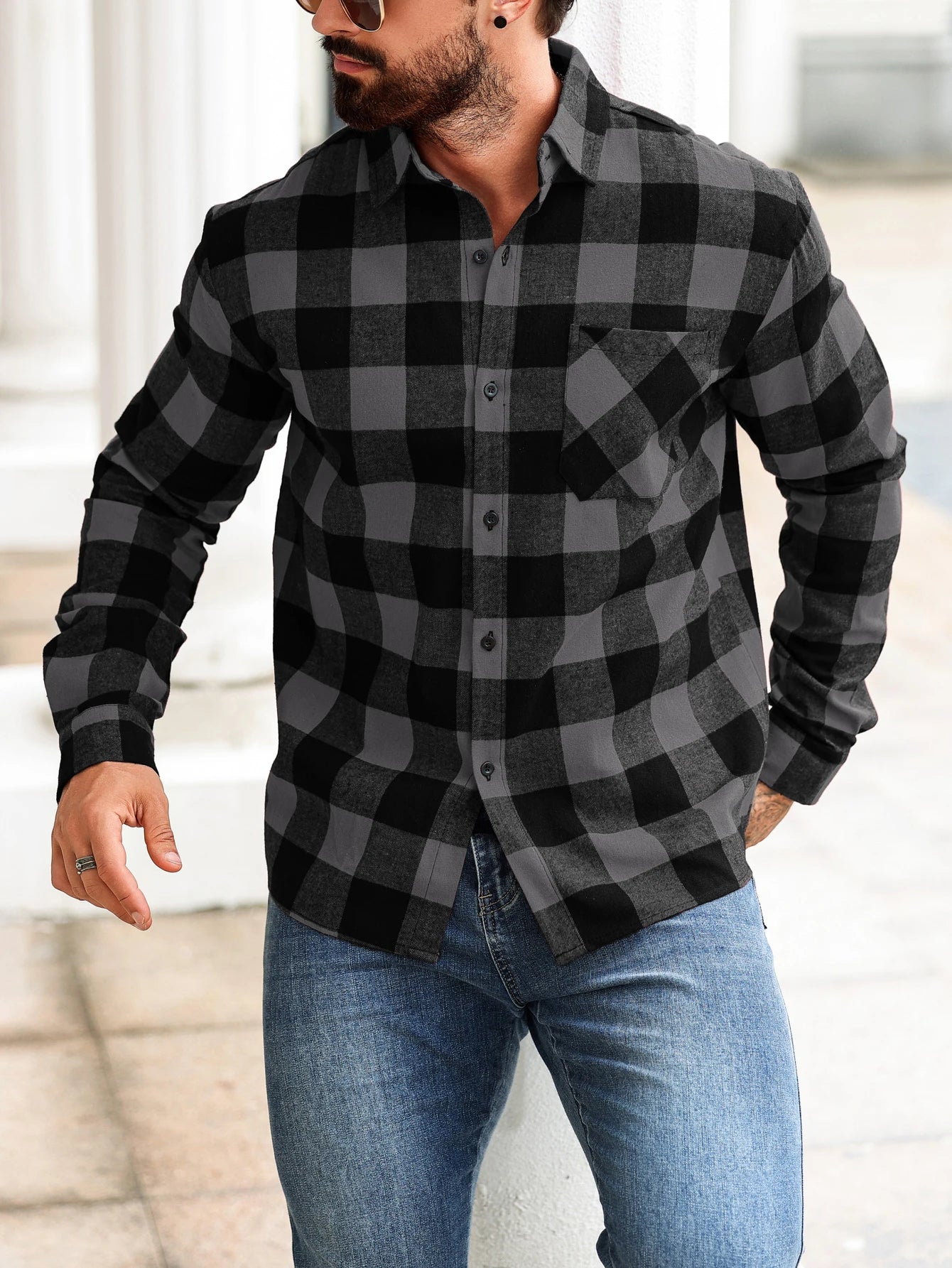new men's checkered shirt that is trendy, versatile, casual, fashionable, and fits snugly for office, outdoor sports, fitness,