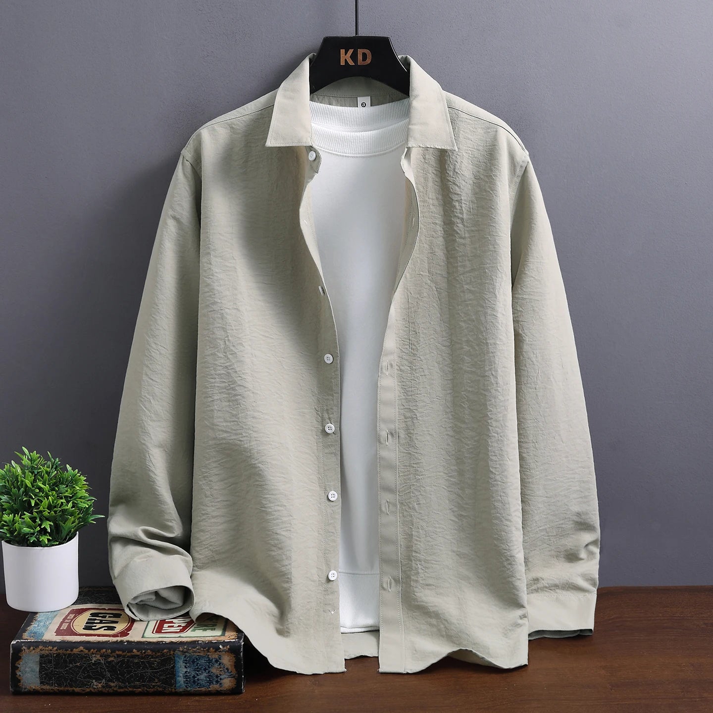 New men's fashionable, cool, versatile, trendy, light luxury, anti-wrinkle long-sleeved shirt, simple and solid color for men