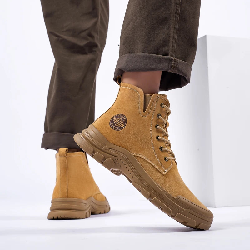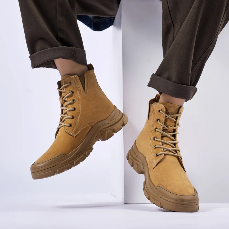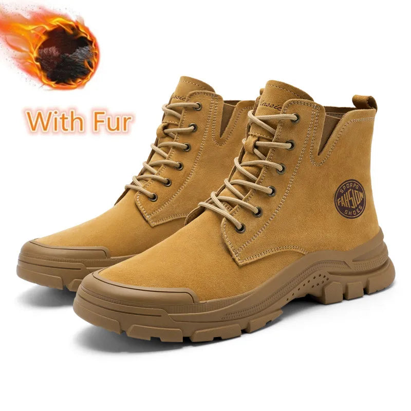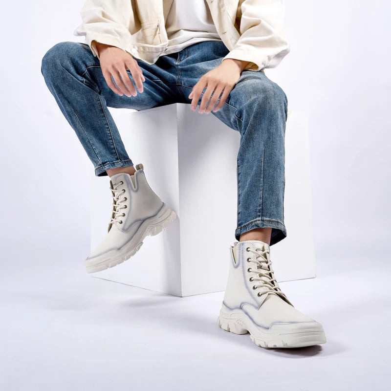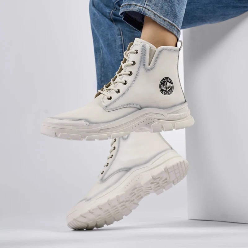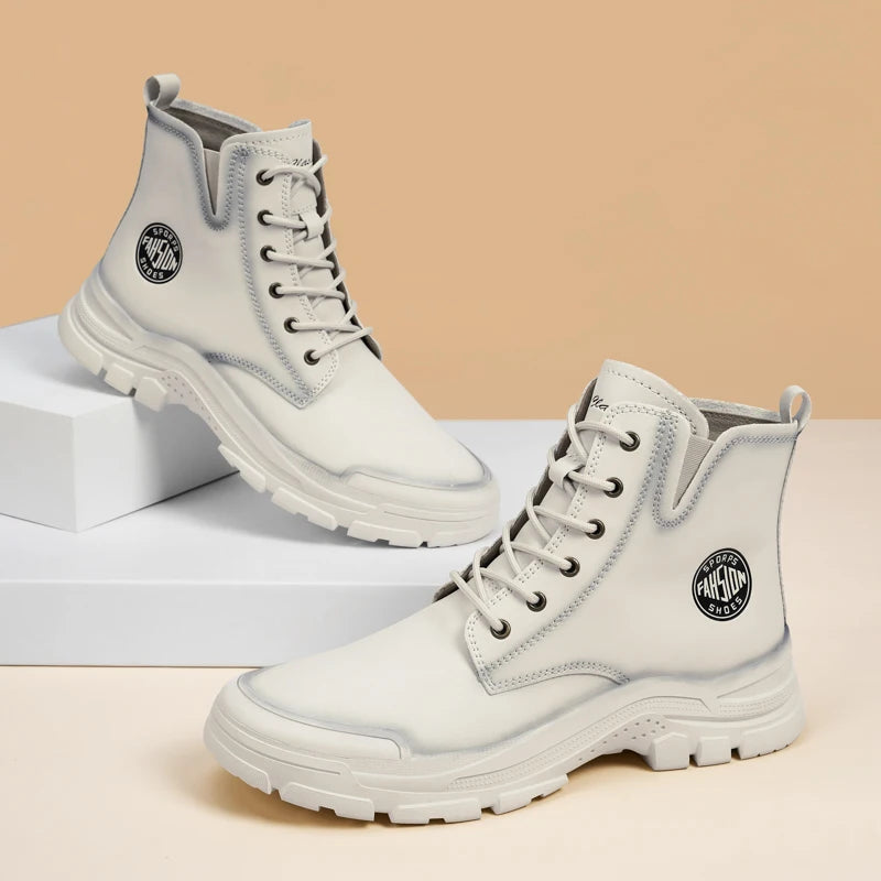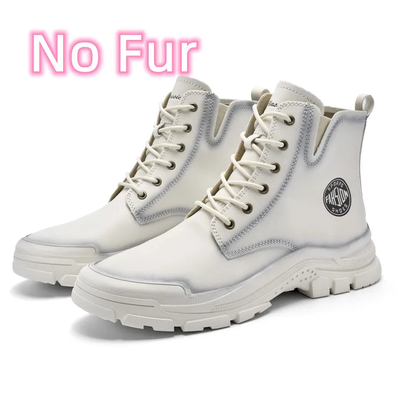 New Mens Sneakers Genuine Leather Walking Boots Fashion Motorcycle Ankle Boots Men Winter Boots Lace-Up Male Men Casual Shoes