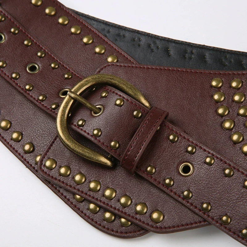 New Rivet Stitch Vintage Gothic Punk Black Belts For Women Chic PU Leather Streetwear Y2K Accessories Female Waistband Wide Belt