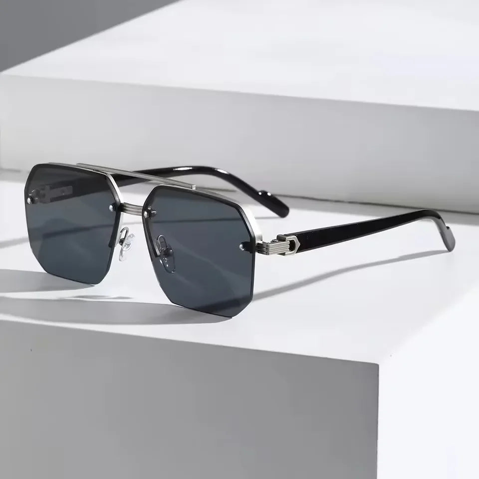 Oversize Retro Double Bridges Polygon Square Metal Men Sunglasses Fashion Gradient Shades UV400 Trending Women Sun Glasses