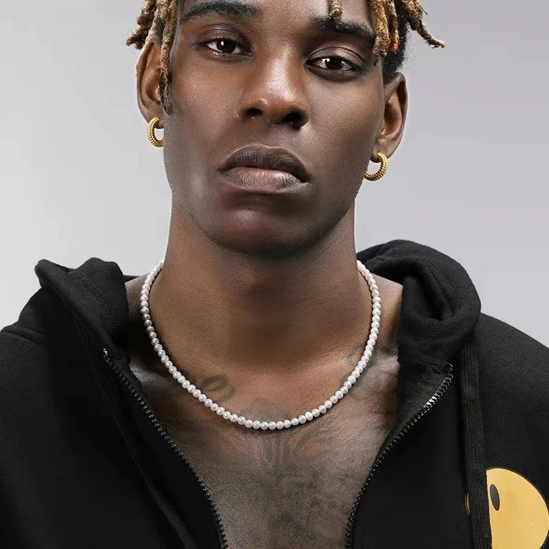 Pearl Necklace Men Simple Handmade Strand Bead Necklace 2022 New Trendy Men Jewelry for Women Girls Wedding Banquet Necklaces