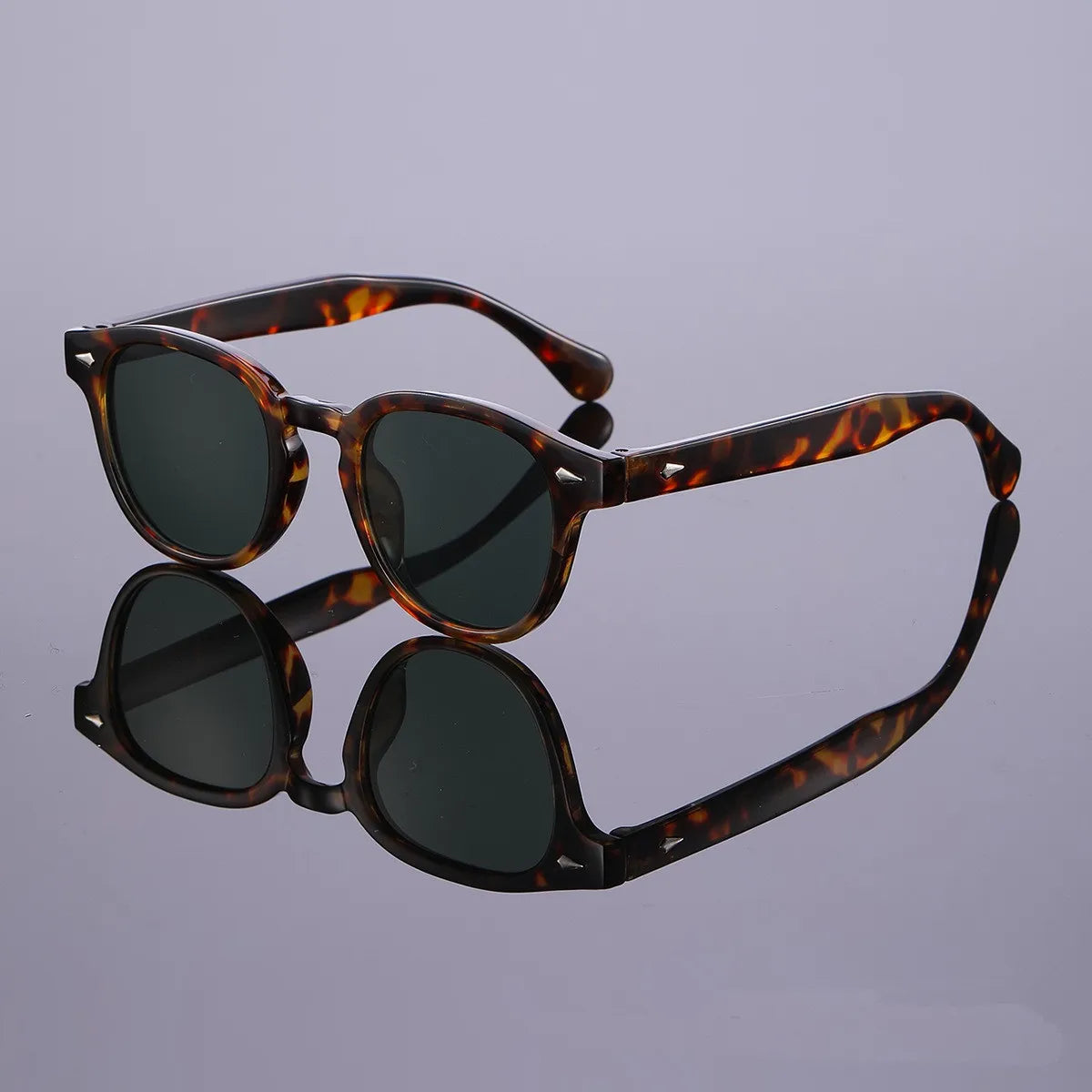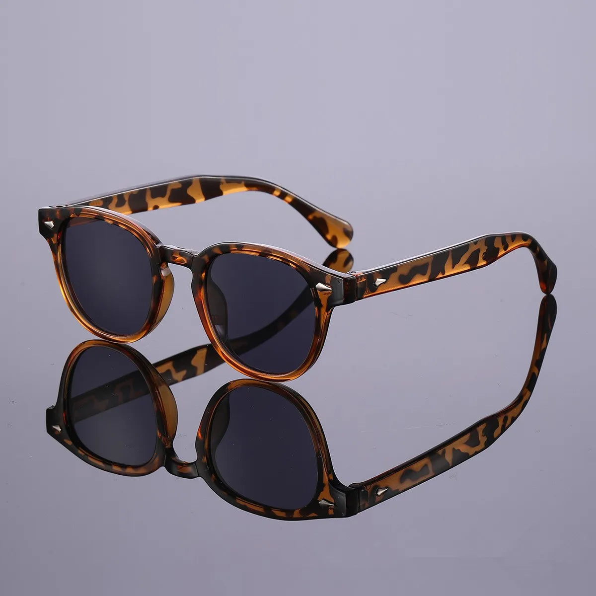 Quality New Retro Round Sunglasses Women Fashion Rivets Decoration Shades UV400 Men Punk Leopard Sun Glasses