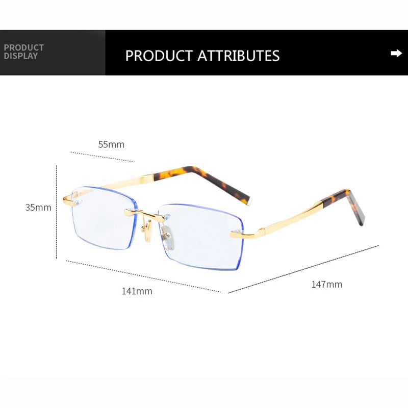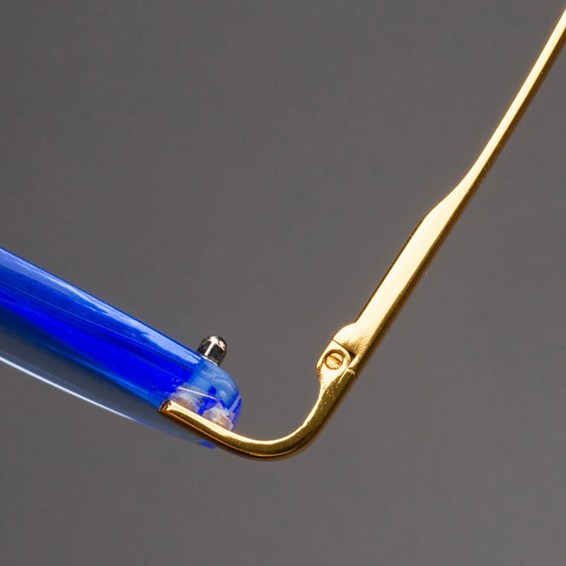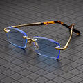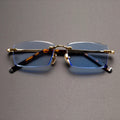 Rimless Glass Sunglasses Man Blue Natural Crystal Sunglasses Woman Luxury Brand Vintage Acetate Frame Mineral Lens Anti Scratch