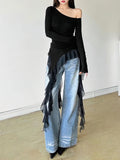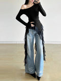 Ruffles Tassel Off shoulder Long sleeve T shirt Women Sweet Gentle Streetwear Party Basic Top Tees Shirt Sexy 2025 New