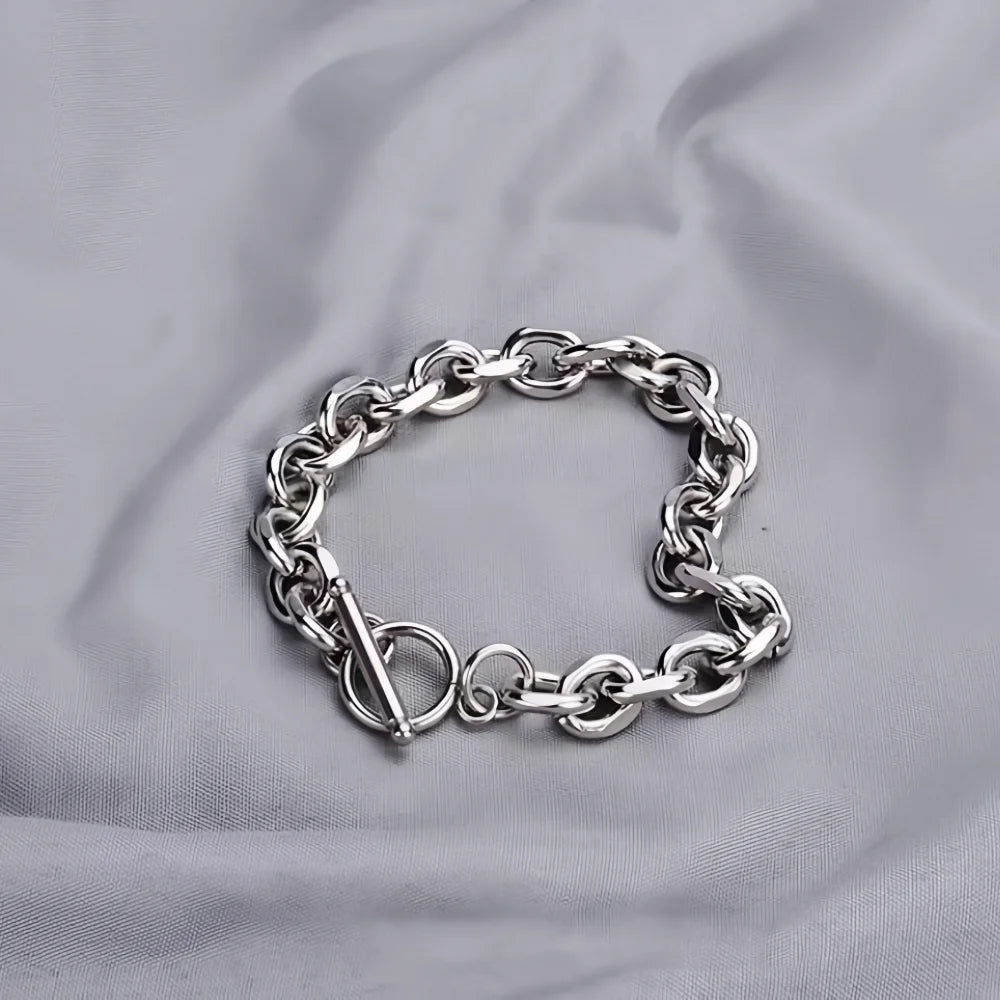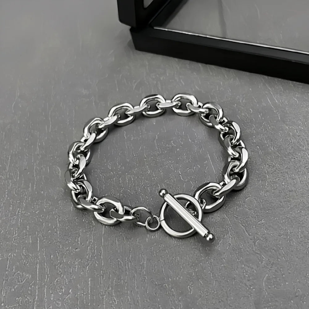 Simple Stainless Steel Men Bracelet INS Silver Color OT Buckle O-Circle Chain Bracelet Fashion Women Jewelry Fashion Accessories