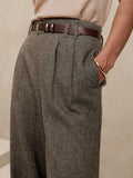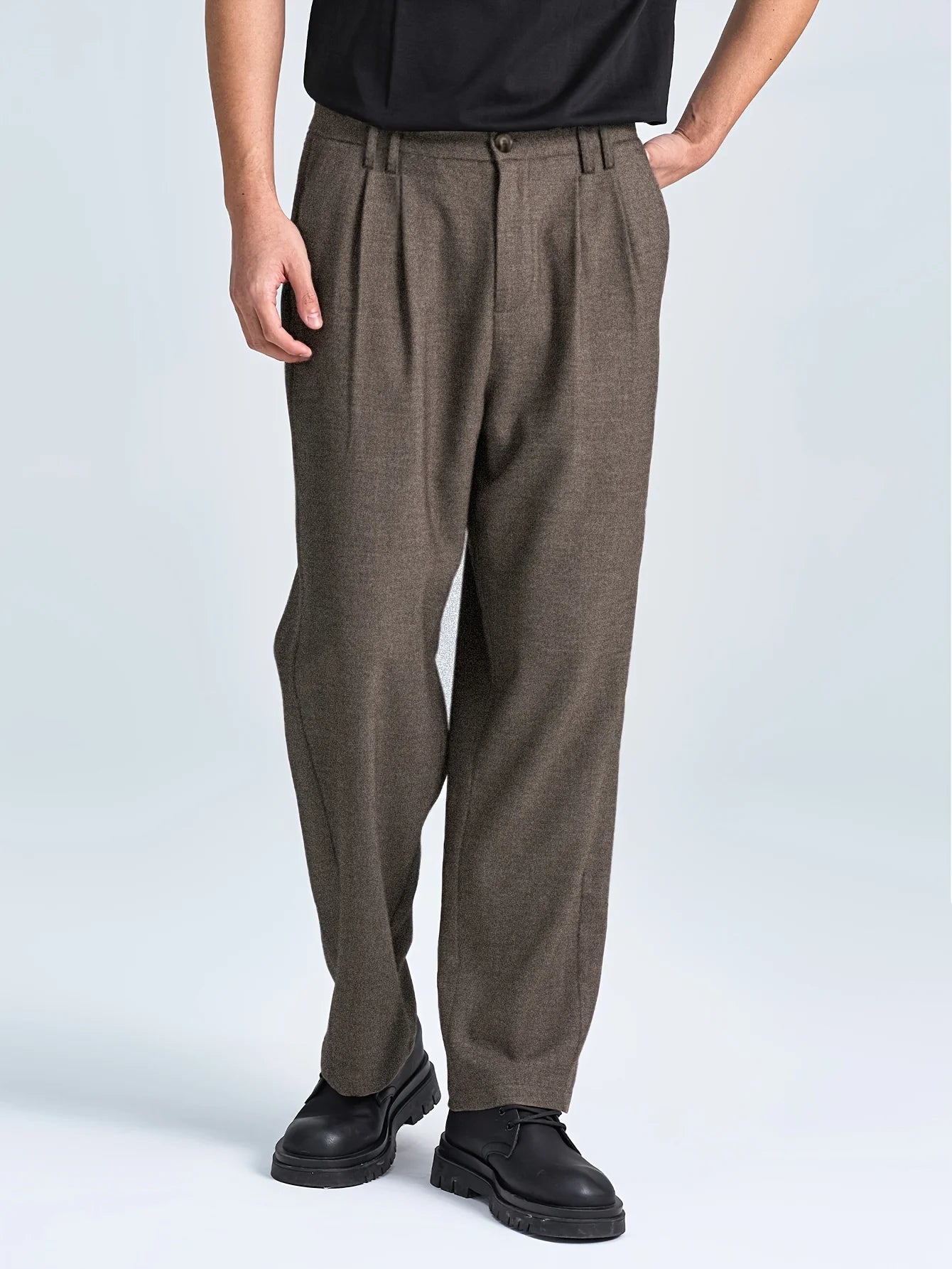Spring Autumn New Elegant Italian Neapolitan Button Pleated High Waist Straight Leg Men's Suit Pants Lightweight Business Style