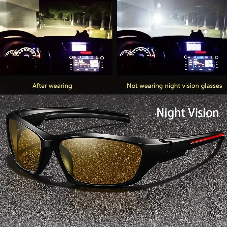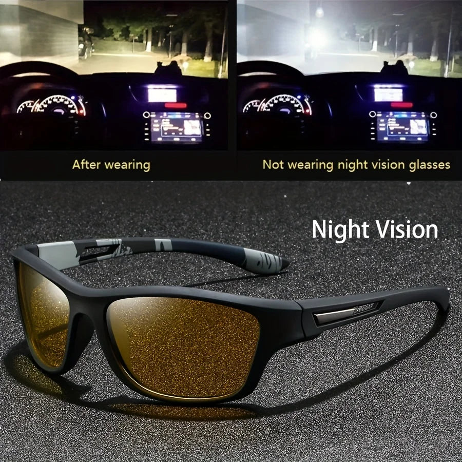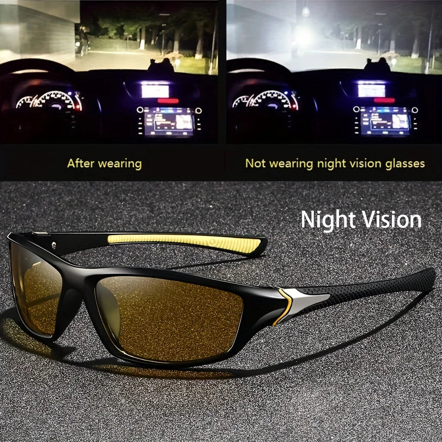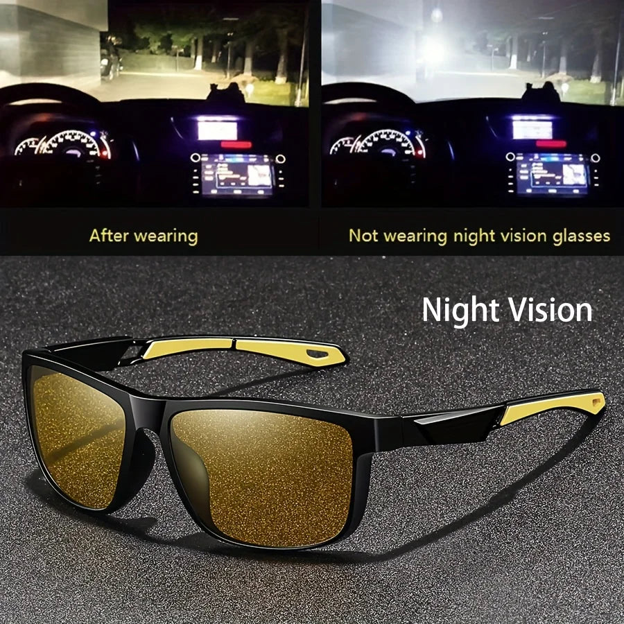 Square Yellow Night Vision Anti-Glare Goggles for Men Women Driving Fishing Beach Sunglasses UV Protection Polycarbonate Glasses