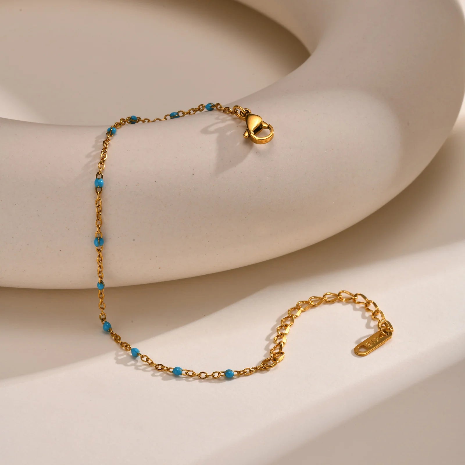 Stainless Steel Chain Bracelet for Women, Colorful Beads Summer 18k Gold Plated, Stainless Steel Waterproof Wrist Jewelry
