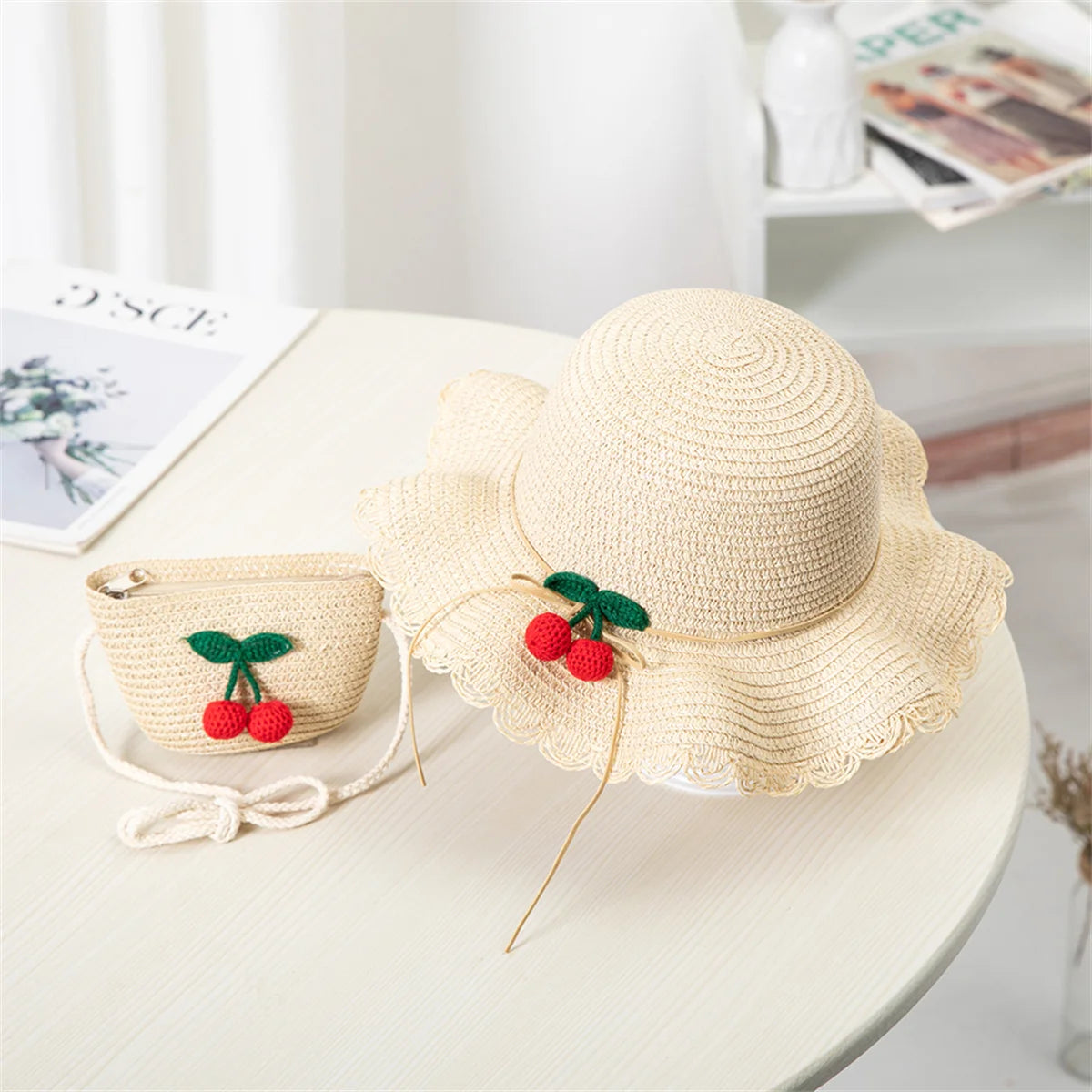 Summer Baby Flower Breathable Hat Straw Hat With Handbag Bags Kids Hat Boy Girls Sun Visor UV protection panama Hat gorras